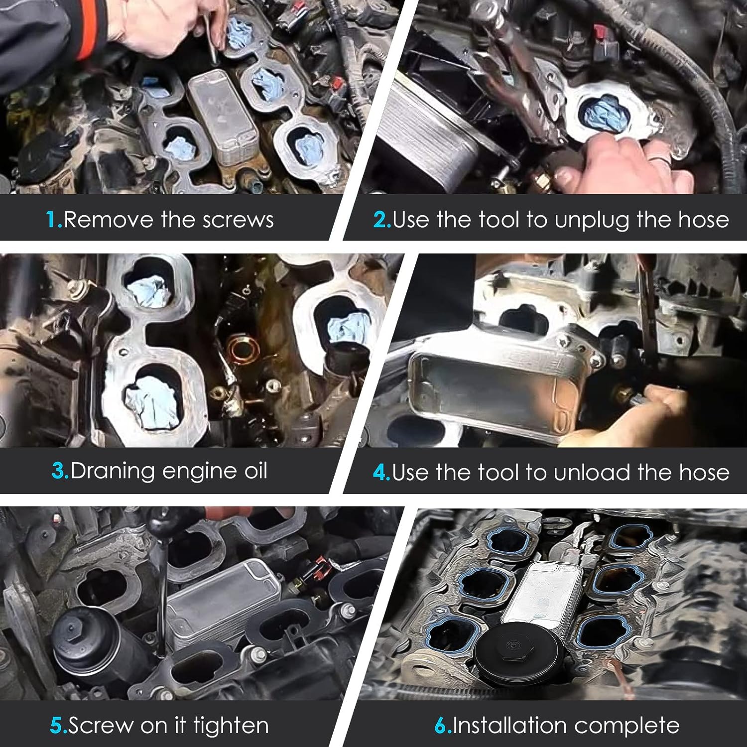 - El paquete incluye: enfriador de aceite y kit de filtro y juntas adaptadoras de carcasa de filtro de aceite Kit de sensor (incluye 6 entradas inferiores + 6 juntas plenum de entrada superior y 5 juntas tóricas). Filtro de aceite preinstalado, sensor de temperatura del aceite, sensor de presión de aceite, válvula de derivación y resorte y anillo de sellado NBR, más fácil de instalar