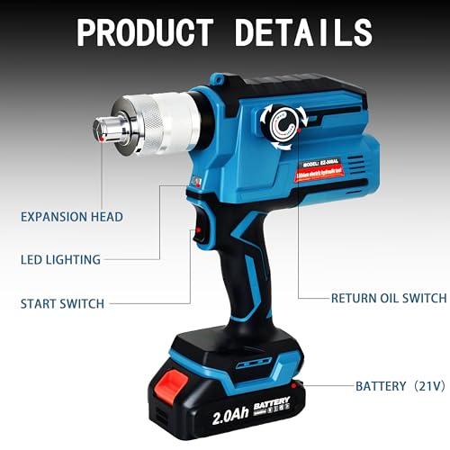 - Batería potente: el expansor de tubo eléctrico está equipado con una batería de litio de gran capacidad de 2.0 Ah, voltaje de trabajo: 21 V, potencia: 60 W. Se tarda unos 20 minutos en cargarse completamente, y puede expandir el tubo de cobre de 5/8" aproximadamente 150 veces. Proporcione un soporte de energía confiable para su trabajo de reparación de HV