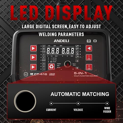 ANDELI 5 en 1 cortador de plasma soldador combo, 160Amp 110/220V Máquina de soldadura de doble voltaje, Gas MIG/Flux MIG/Lift TIG/Stick/Cut Multi-Proceso Soldador (MCT-416 PRO)