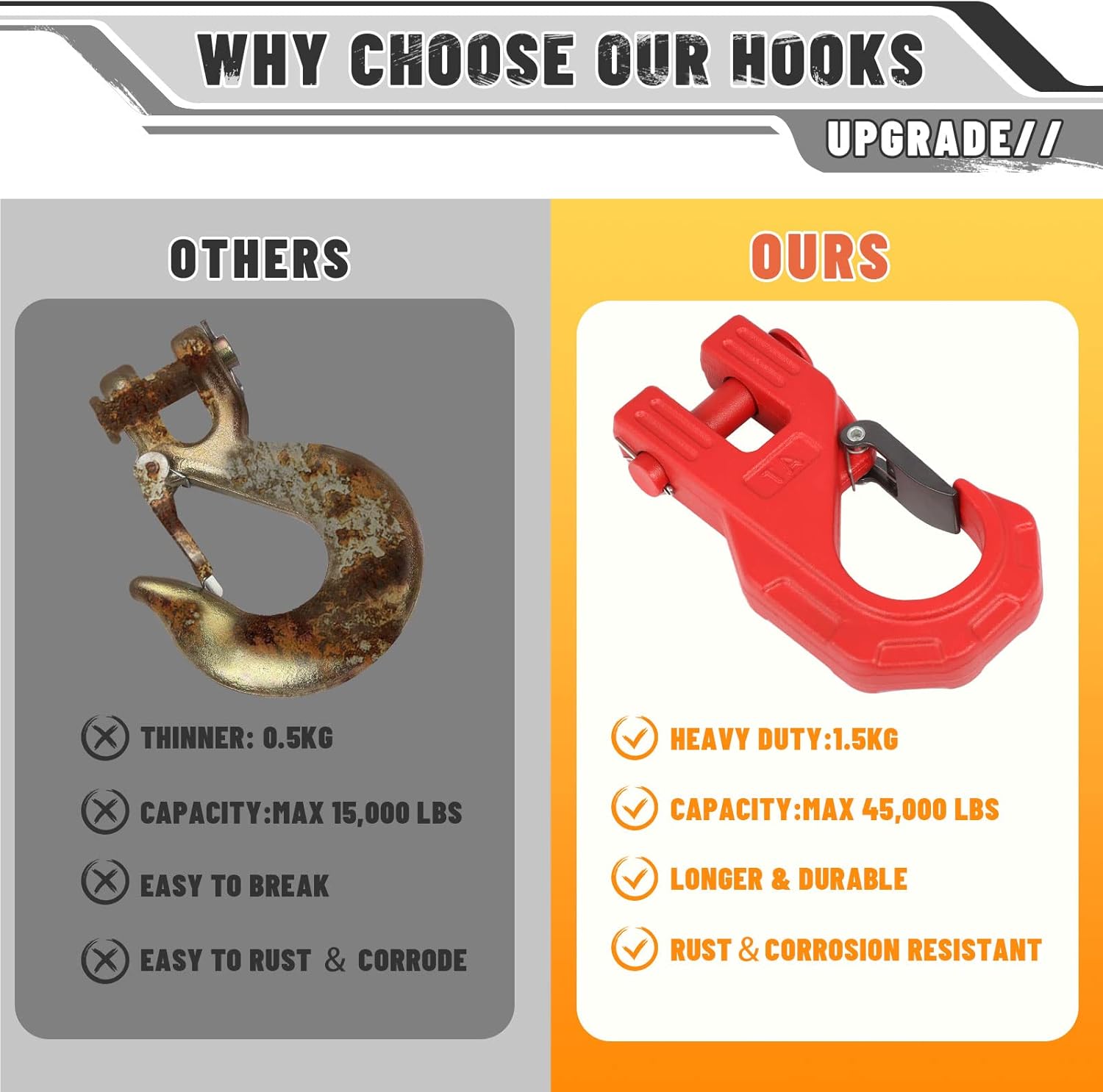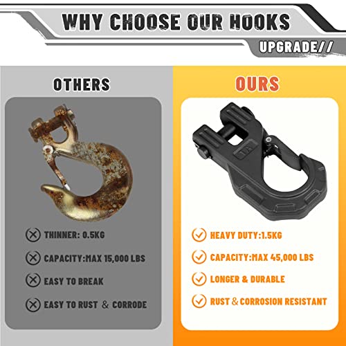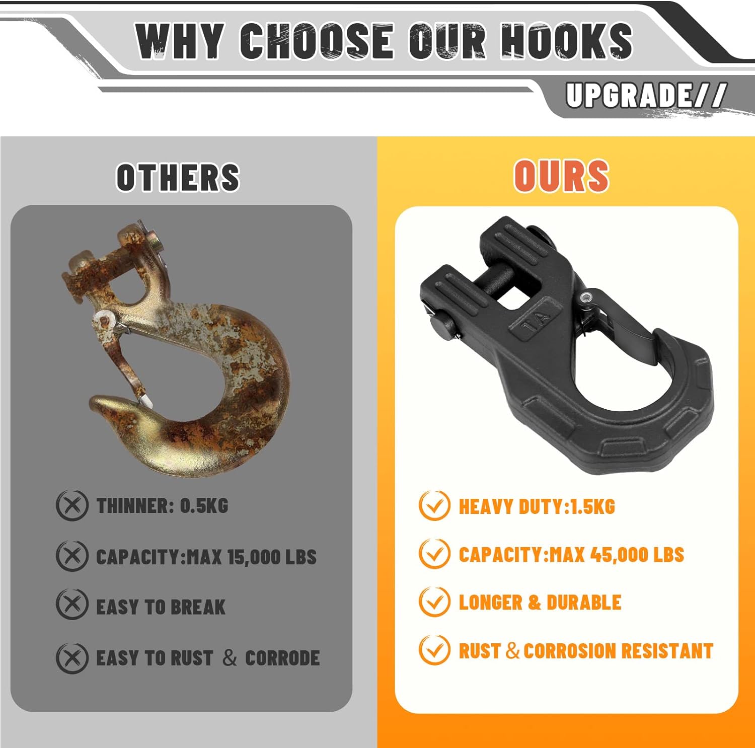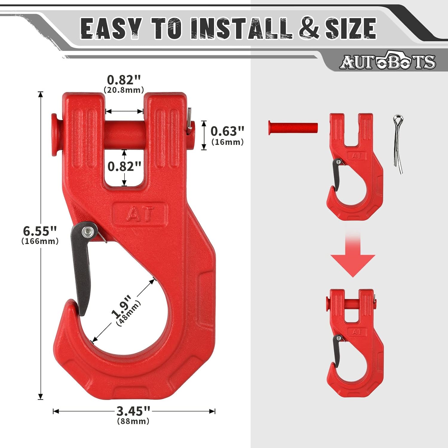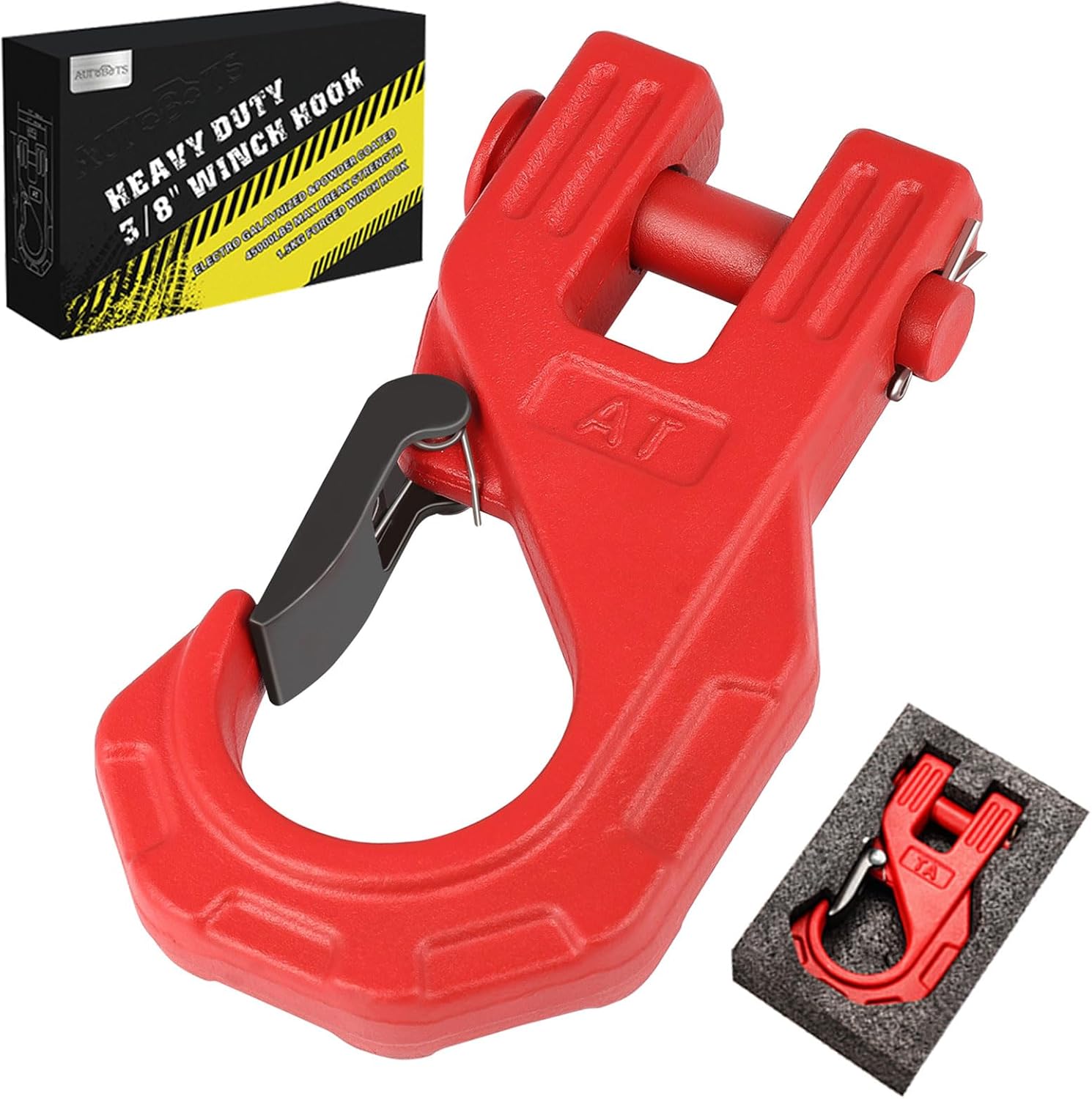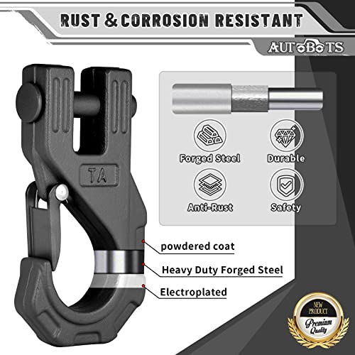 AUTOBOTS Gancho de cabrestante de 3/8 pulgadas, resistente, máximo 20 toneladas (45,000 libras), gancho de cabrestante ATV de acero forjado con pestillo de seguridad, gancho deslizante para