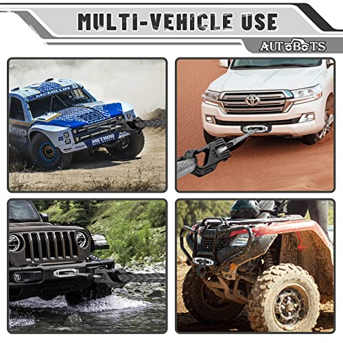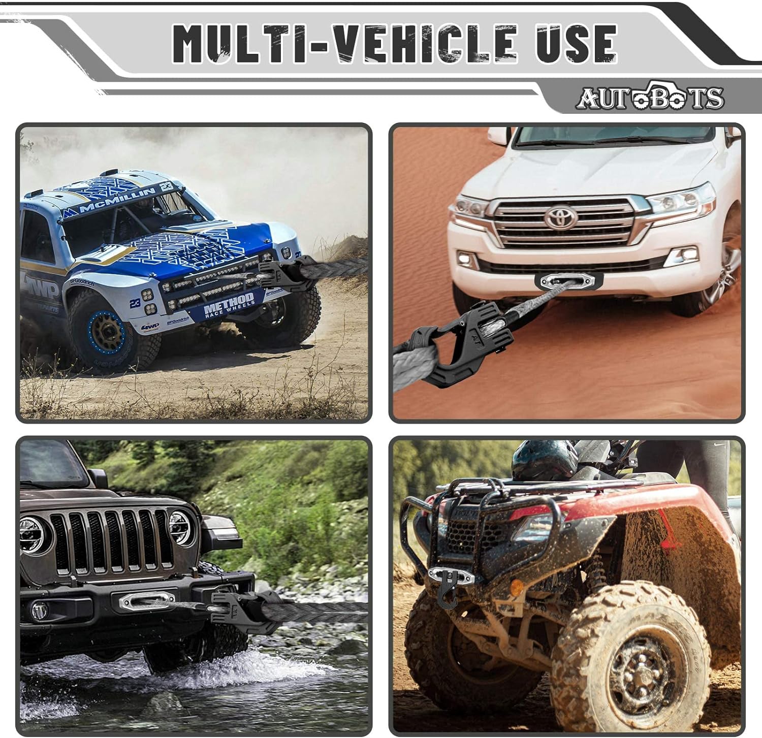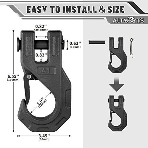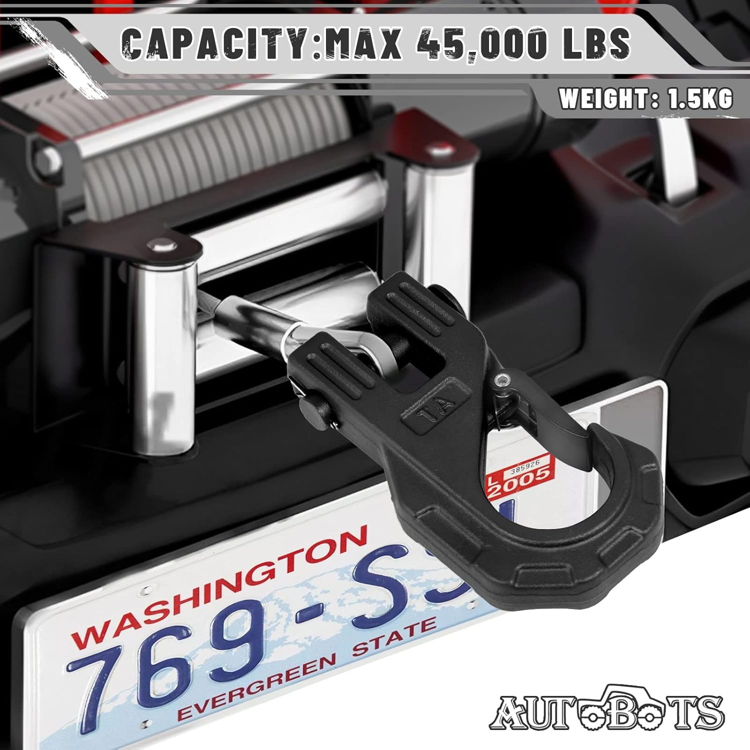 - Gancho de cabrestante resistente: gancho para cable de cabrestante AUTOBOTS de 3/8 pulgadas muy duradero y resistente, peso de 3.3 lbs, 20 toneladas (45.000 libras) de resistencia a la rotura, hechos de acero forjado ultra fuerte, nuestros ganchos de cuerda de cabrestante sintético están galvanizados y rociados, con doble protección para una mejor prevención de óxido y corrosión.