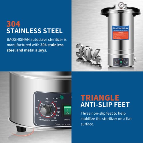 - BAOSHISHAN La autoclave de 25 cuartos de galón ofrece toda la calidad y fiabilidad que esperas, con la comodidad adicional de control de temperatura y tiempo.