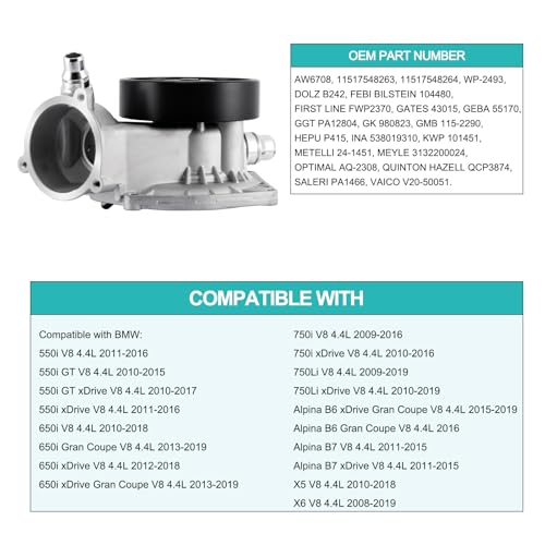 AW6708 - Bomba de agua (4.4L V8 solamente) para BMW 550i GT xDrive 10-17,650i X5 10-18,650i xDrive Gran Coupe 12-19,750i xDrive 09-16,750Li xDrive 09-19, Alpina B6 xxxxDrive Gran Coupe Coupe