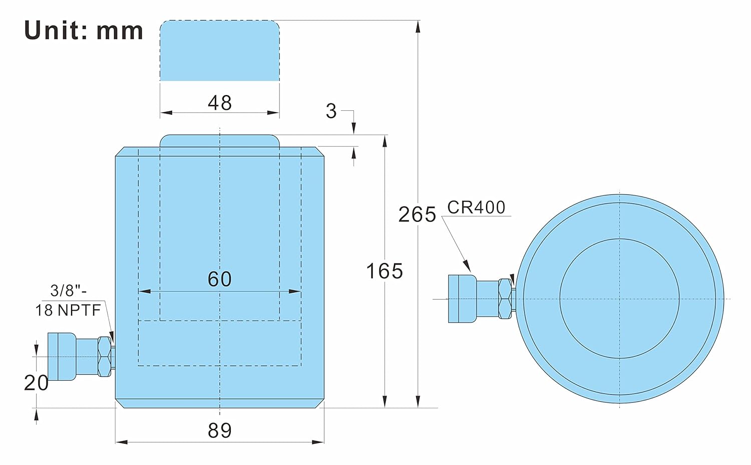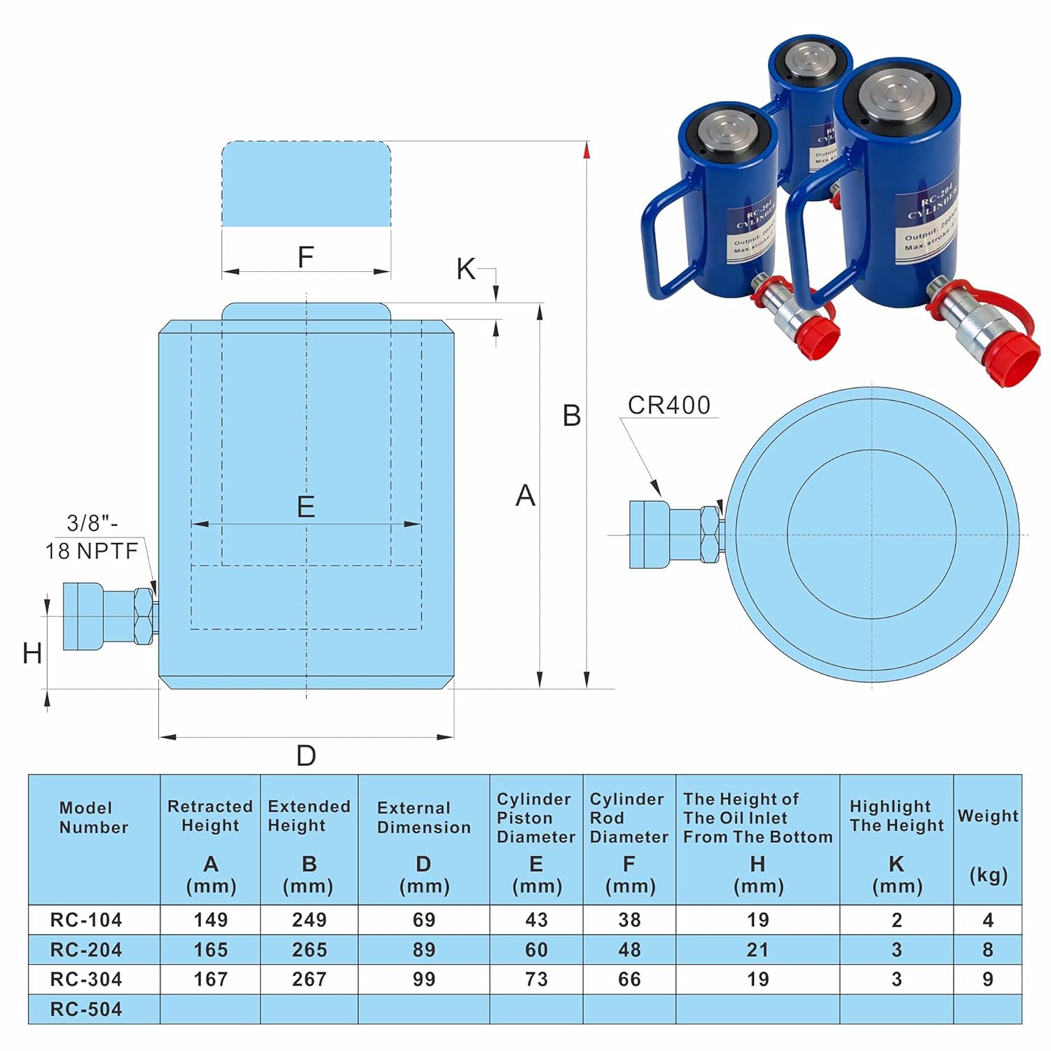AZMCNC - Cilindro hidráulico de 20 toneladas de acción única de 4 pulgadas de carrera 20T cilindro hidráulico gato elevador Ram portátil de acción única cilindros de elevación con carrera de 100 mm