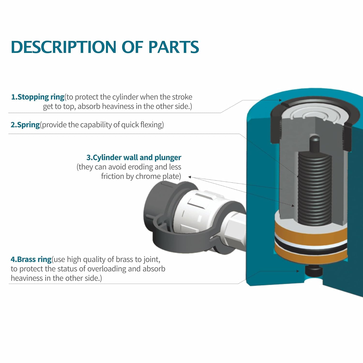 - Presión máxima: 10.000 PSI. Acción única: extensión de presión, retorno de resorte.