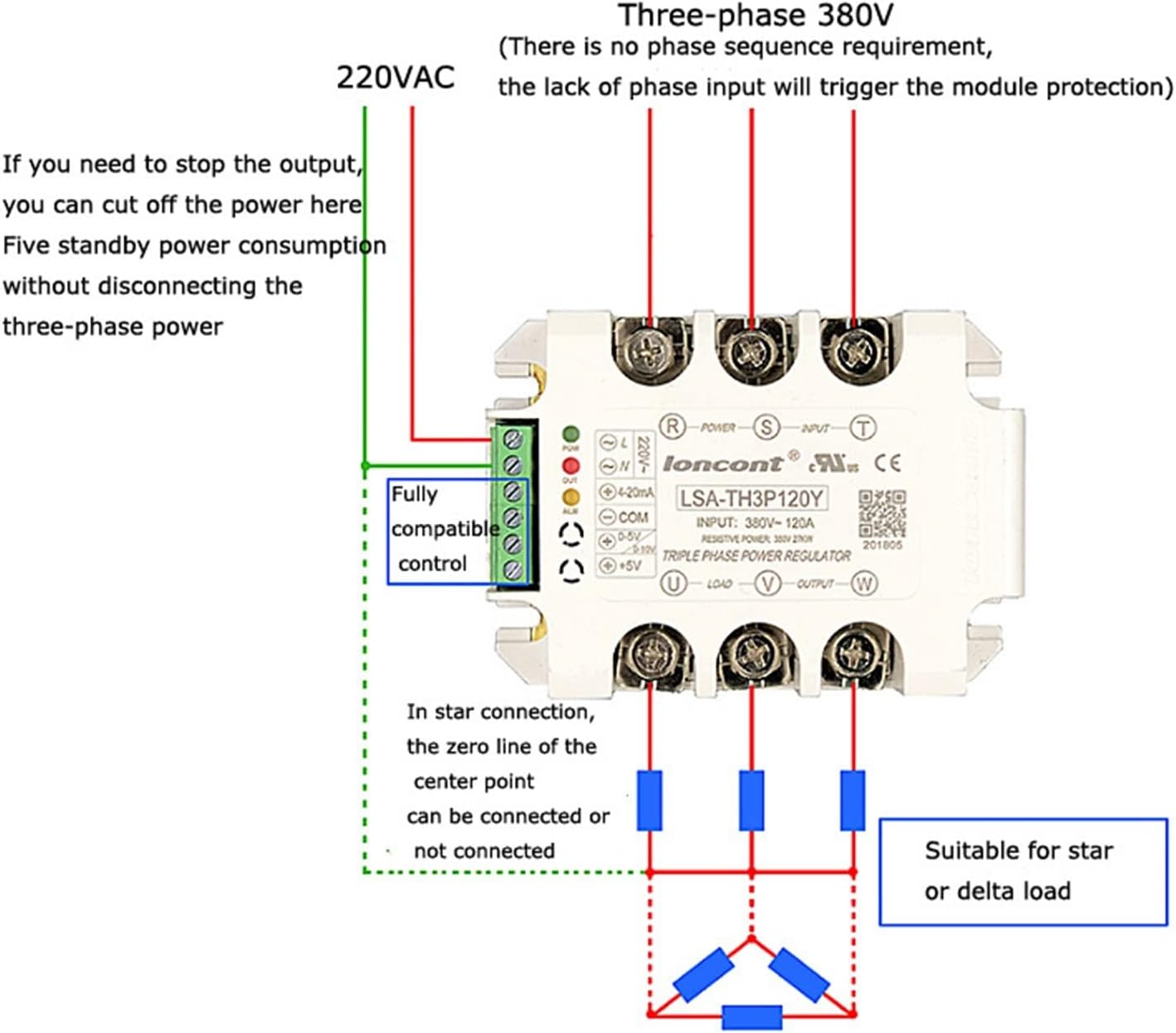 BBAUER Regulador de potencia regulador de voltaje de CA trifásico, tiristor, relé de estado sólido, atenuación 15A-200A, 1 unidad (color: solo módulo, tamaño: 200 A (50 KW))