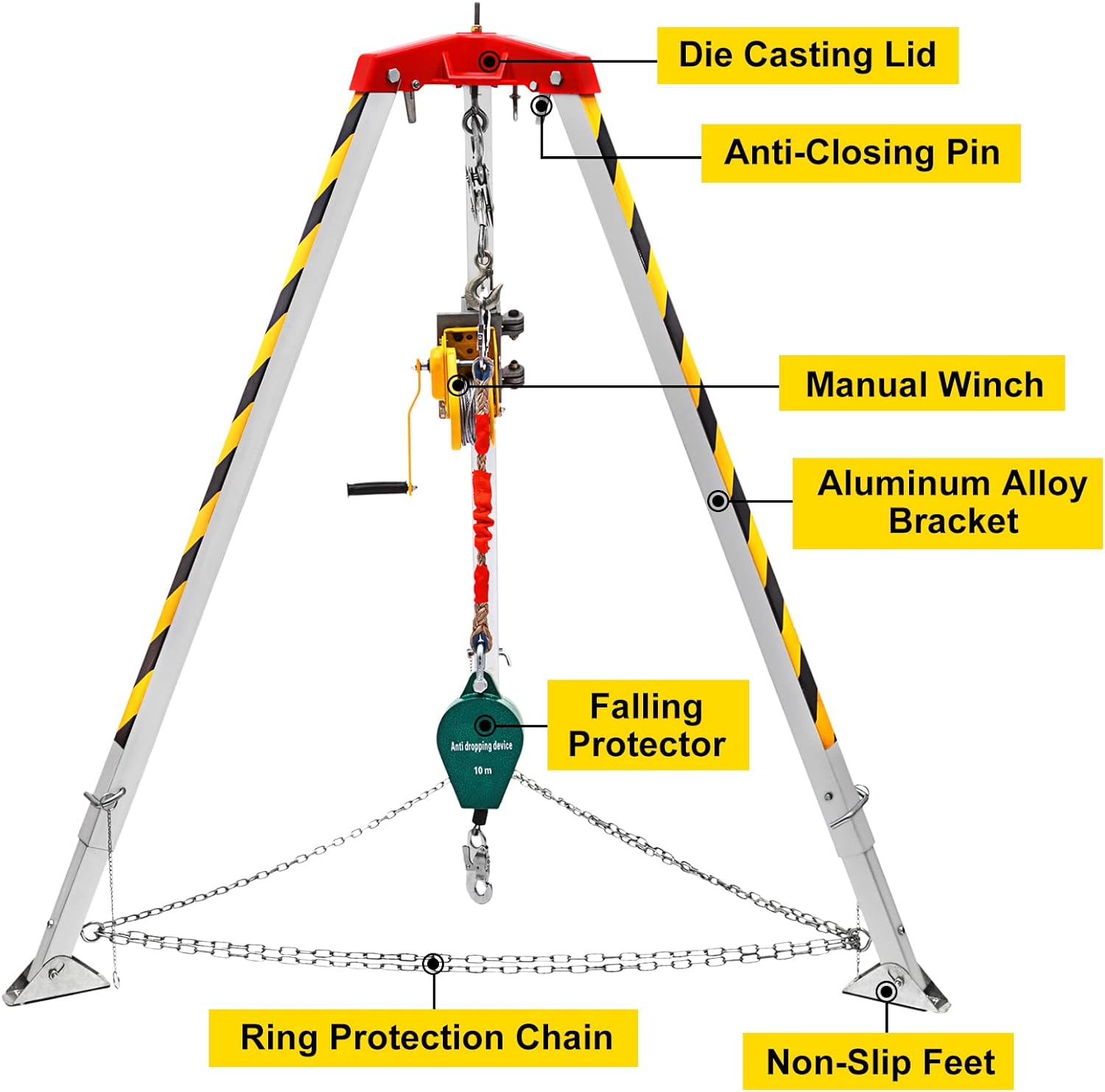 - Construcción de aleación de aluminio: Construido de hierro de alta calidad y aleación de aluminio de alta calidad, la placa superior tratada a través del proceso de fundición a presión, el kit de rescate de trípode es sólido y duradero. Adhesivo reflectante amarillo y negro para mayor visibilidad.