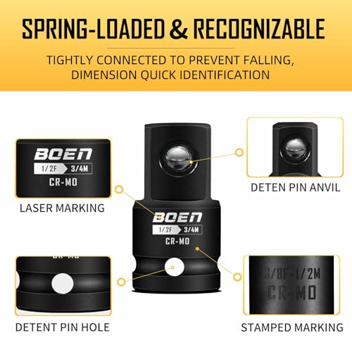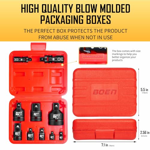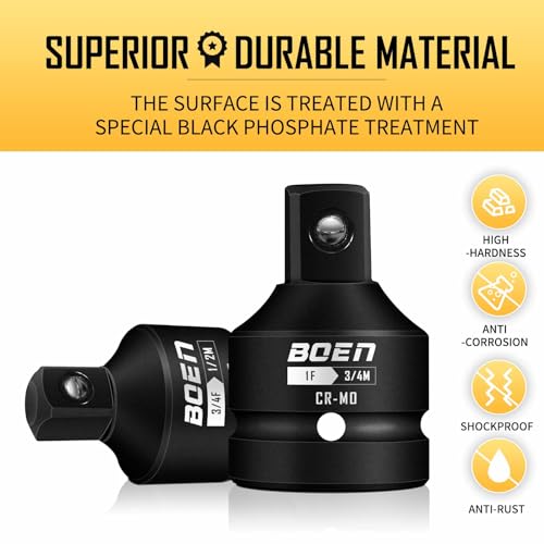 - Materiales de alta calidad: construido con acero al cromo molibdeno forjado tratado térmicamente, el juego de adaptadores de impacto boen ofrece una dureza ultra alta, un desgaste reducido, un par mejorado y una resistencia excepcional a la corrosión. Está diseñado para manejar el alto par generado por las herramientas de impacto y garantizar una larga durabilidad