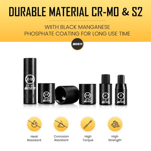 - Marcado duradero y estampado: a diferencia del revestimiento tradicional de óxido negro, el juego de enchufes de impacto profundo boen 1/2 dirve adopta un revestimiento de fosfato negro para proporcionar una excelente resistencia a la corrosión y resistencia al óxido para un uso a largo plazo. Las marcas láser y las marcas estampadas hacen que todos los números de modelo sean fáciles de mantener, leer e identificar rápidamente