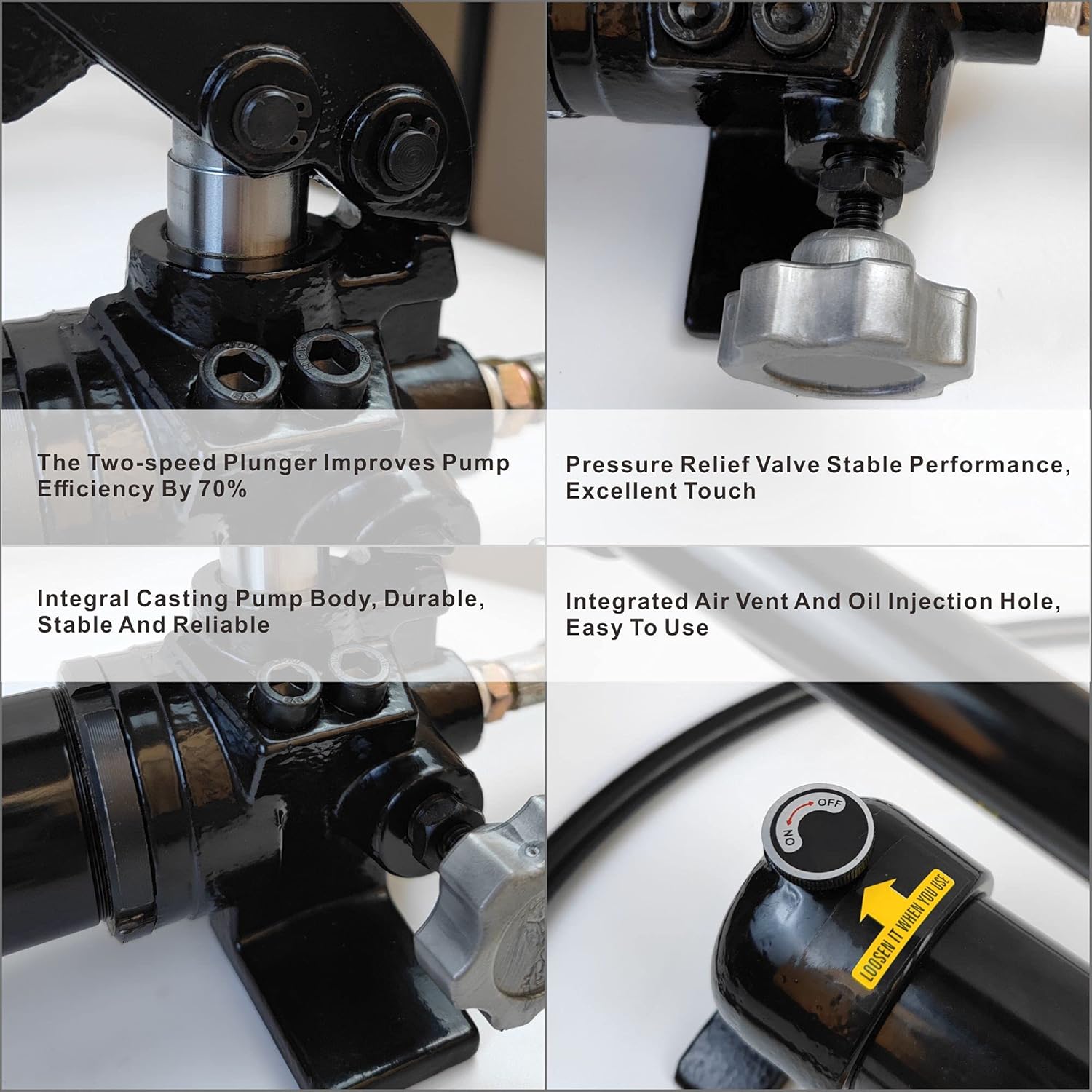 - La bomba hidráulica manual es duradera, superficie lisa y buen rendimiento de sellado. Cuerpo de bomba de fundición integral, duradero, estable y fiable