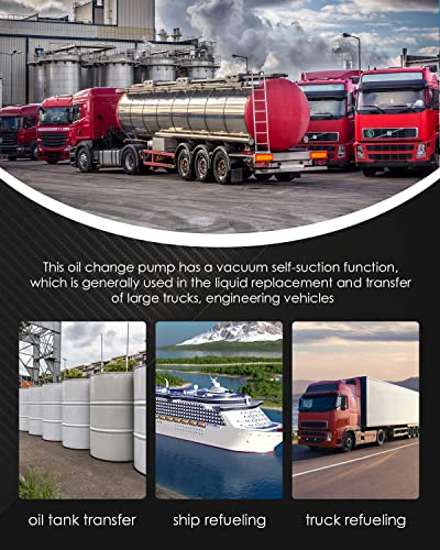 - [Transferencia y cambio] Esta bomba de cambio de aceite tiene una función de aspiración al vacío, que generalmente se utiliza en el reemplazo y transferencia de líquidos de camiones grandes, vehículos de ingeniería, cosechadoras y pequeños equipos de repostaje, incluyendo diésel, aceite de motor, aceite lubricante, queroseno y otros líquidos oleosos de alta viscosidad. 【Consejo】Excepto combustible de petróleo de gasolina.