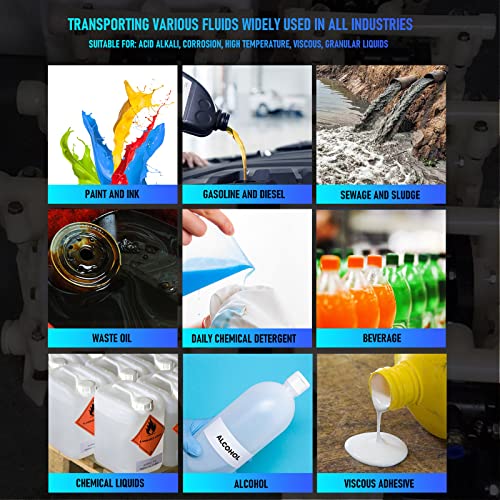 - DIFERENTES MATERIALES PARA DIFERENTES CONDICIONES: aleación de aluminio adecuada para líquidos corrosivos suaves como: pegamento, recubrimientos a base de agua, aceite, disolventes orgánicos, agua de esmalte cerámico. Acero inoxidable adecuado para líquidos corrosivos medios como disolventes, tolueno, alimentos, productos farmacéuticos, cosméticos con buena resistencia al desgaste resistencia a la corrosión. Plástico de polipropileno adecuado para líquidos corrosivos medios como lejía, hipoclorito de sodio, etanol, acetona, etc. . El fluoruro de polivinilideno es altamente resistente a la corrosión, como ácido clorhídrico, ácido nítrico, ácido sulfúrico, ácido fluorhídrico, aqua regia y la mayoría de los otros líquidos ácido-base fuertes