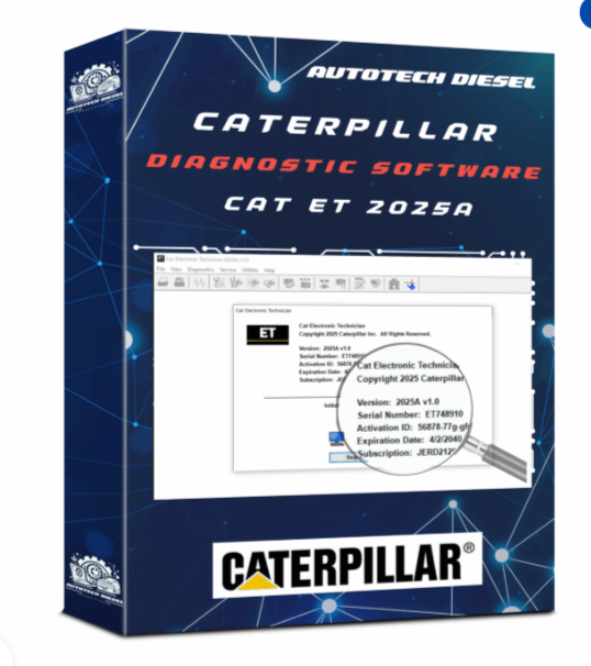CAT ET 2025A: Software de diagnóstico oficial de Caterpillar con instalación remota completa. Compatible con todos los motores y máquinas CAT hasta el modelo 2025. Incluye acceso con contraseña de fábrica (10 dígitos).
