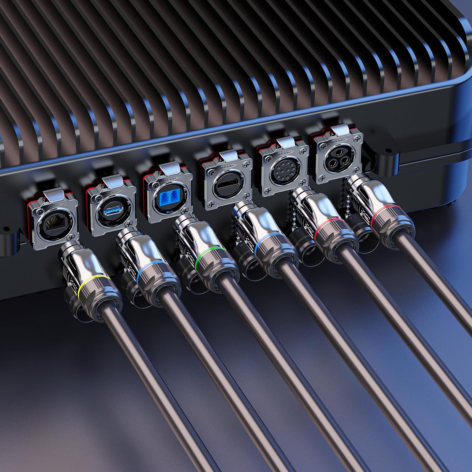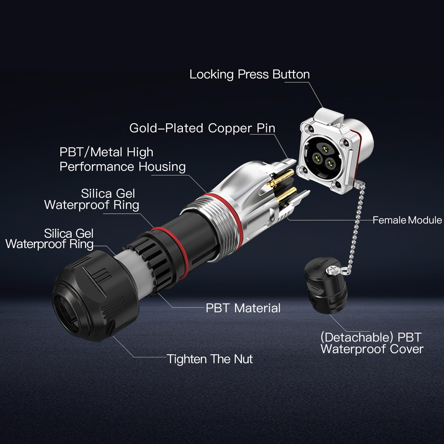 - Protección robusta: Con un nivel de protección acoplado IP68, este conjunto ofrece un blindaje robusto contra el polvo, la humedad y otros factores ambientales cuando los conectores están conectados. Esto significa que incluso en entornos industriales severos o instalaciones al aire libre, sus conexiones permanecen intactas, confiables y libres de posibles interrupciones.
