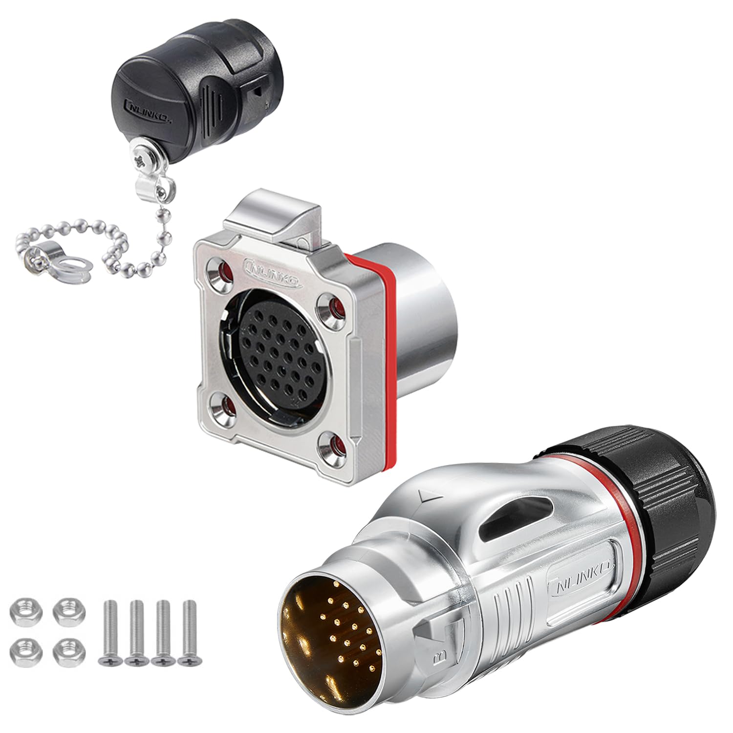 CNLINKO BD-24 Conectores impermeables industriales de 24 pines, conector circular IP68, carcasa antiinterferencias de metal duro, conector de aviación de enchufe rápido, enchufe de brida de montaje en