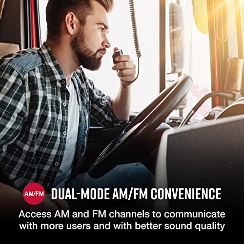 - AM/FM de modo dual: comunicación eficiente mientras estás en la carretera es más fácil. Esta radio CB proporciona acceso tanto a canales AM como FM, lo que permite la comunicación con más usuarios, largo alcance o cerca, y con una mejor calidad de sonido.