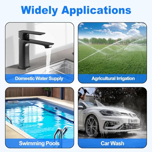 - 【Amplia aplicación】: este controlador automático de bomba es adecuado para una variedad de aplicaciones, incluyendo suministro de agua doméstica, riego agrícola, sistemas industriales, piscinas, tratamiento de aguas residuales y proyectos de construcción. Su función de control inteligente es particularmente eficaz en la gestión de sistemas de agua complejos, asegurando un suministro de agua constante y estable.