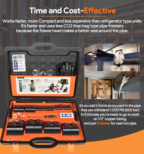- Eficiente y rentable: este kit de congelación de tuberías CST2 es más rápido y más asequible que las unidades tradicionales de refrigeración o de tipo bolsa, utilizando menos CO2 también. Permite reparaciones rápidas y efectivas sin la necesidad de drenar líneas de agua o sistemas
