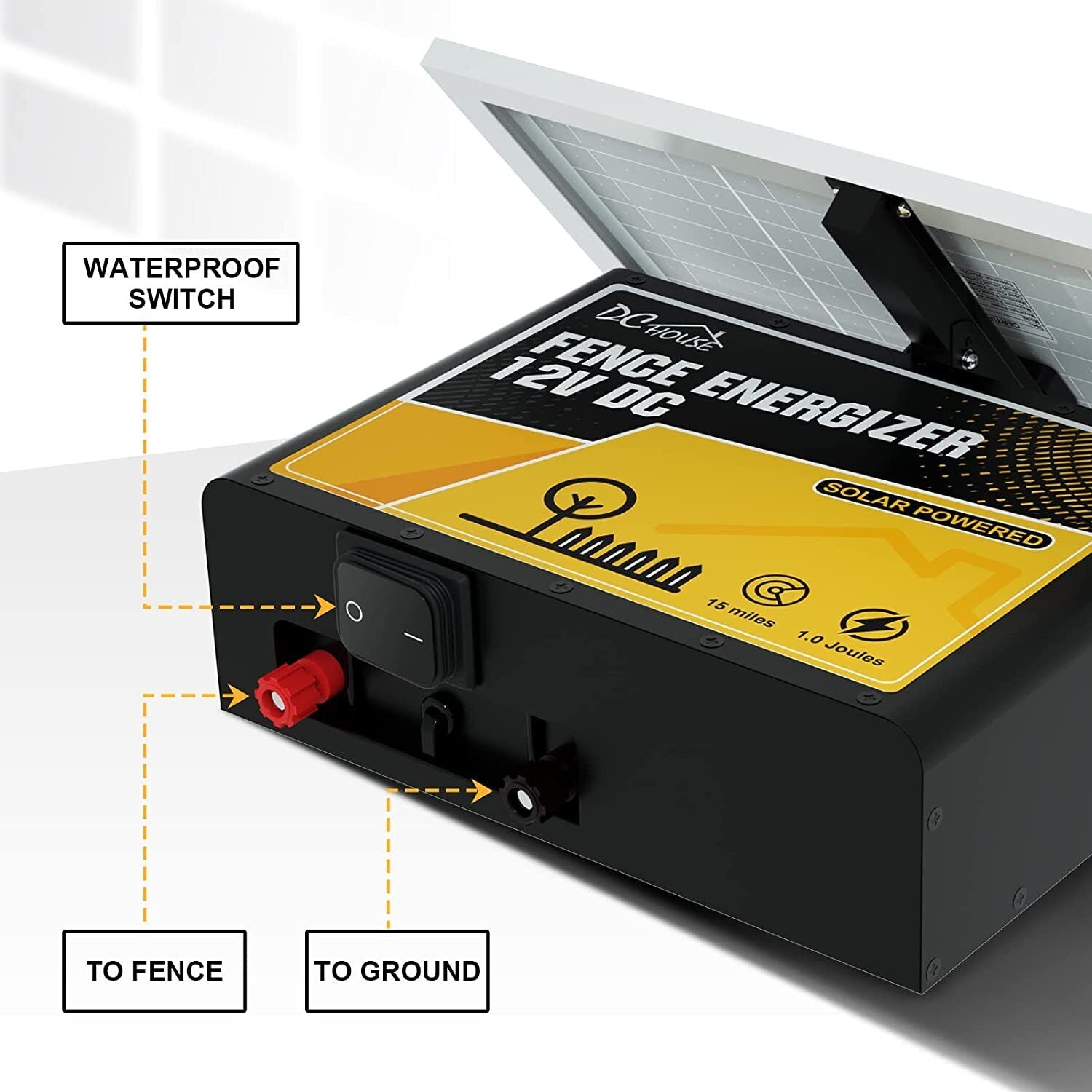 DC HOUSE Solar Powered Electric Fence Charger 15 Mile Electric Fence Energizer
