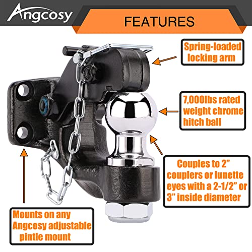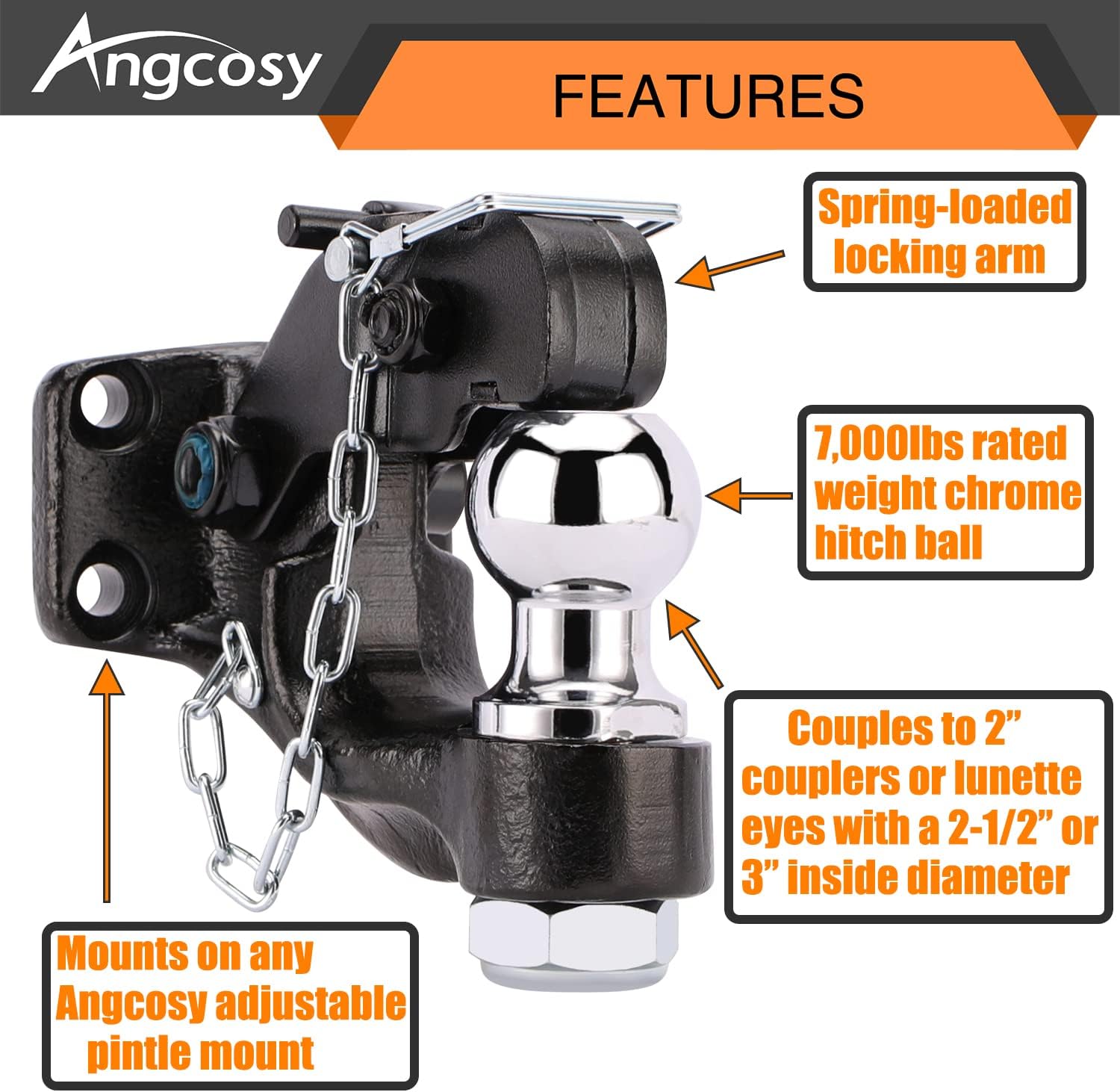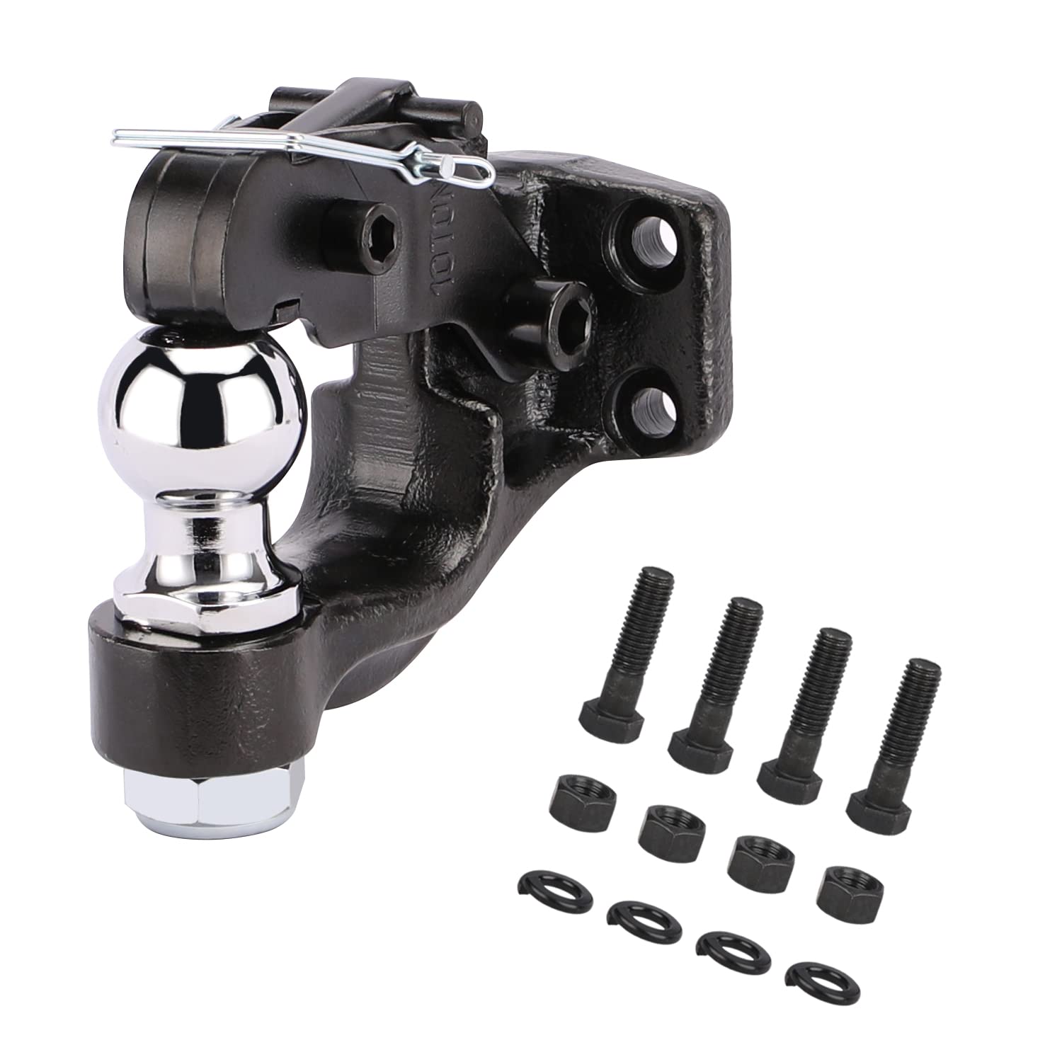 - Capacidad: el gancho de púa tiene un peso de remolque de 10 toneladas que es de 20,000 libras, y una bola de enganche de 2 pulgadas con un peso nominal de 7,000 libras; el tamaño es adecuado para un anillo de remolque con un diámetro de 2-1/2 pulgadas;