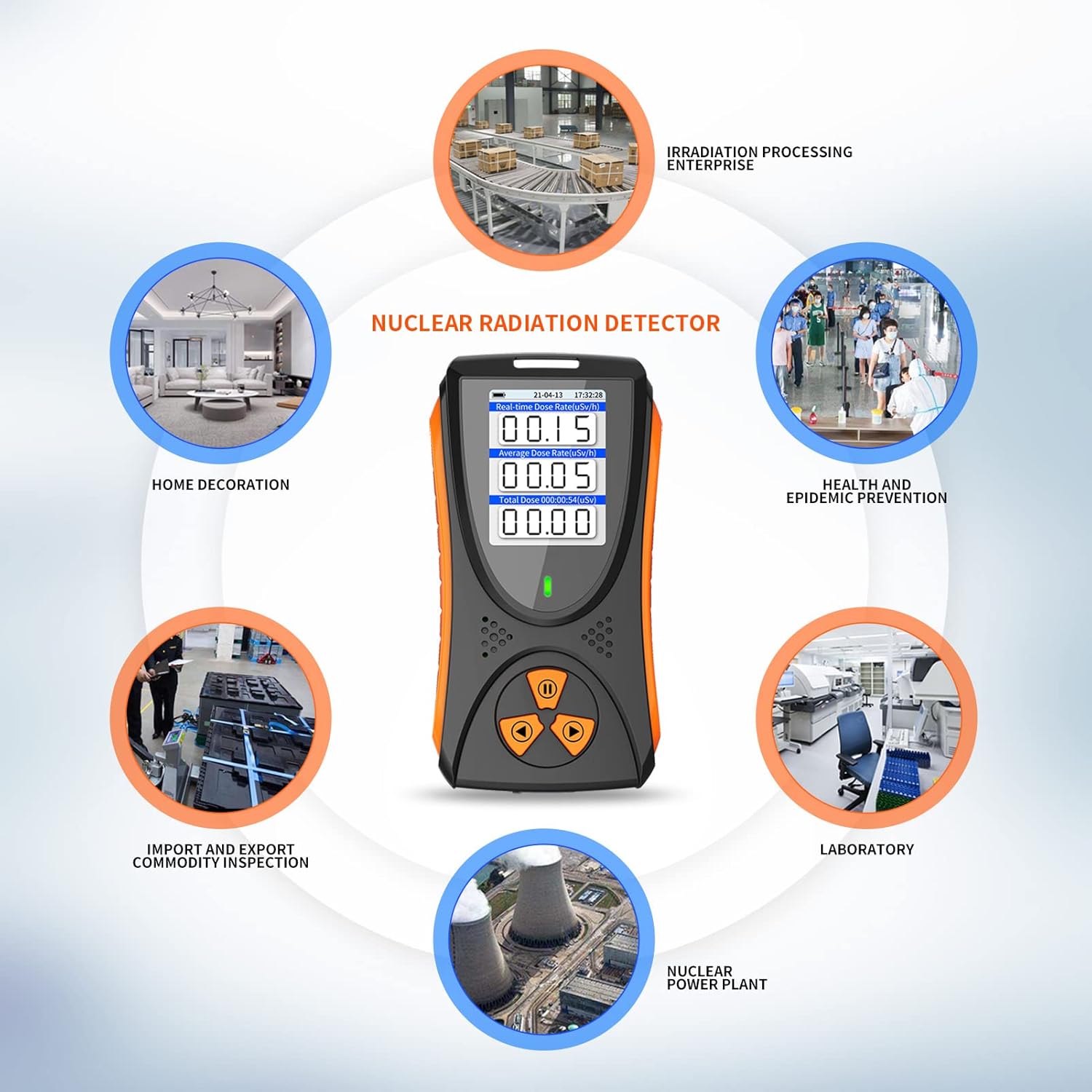 - Utilice el contador del tubo Geiger Muller de 157.5 ft m para la radiación nuclear, utilizado principalmente para Beta, gamma y X-Ray.Rango de detección: 0.08 uSv - 50mSv
