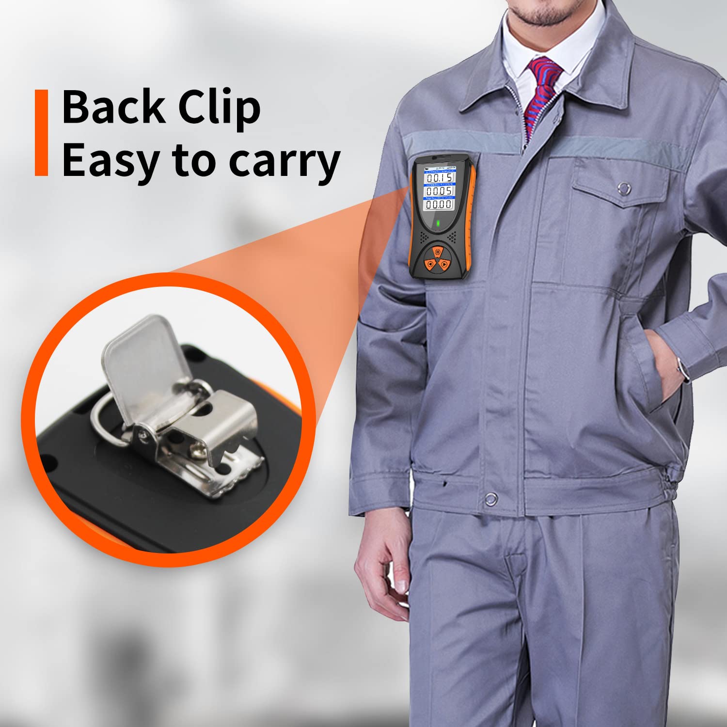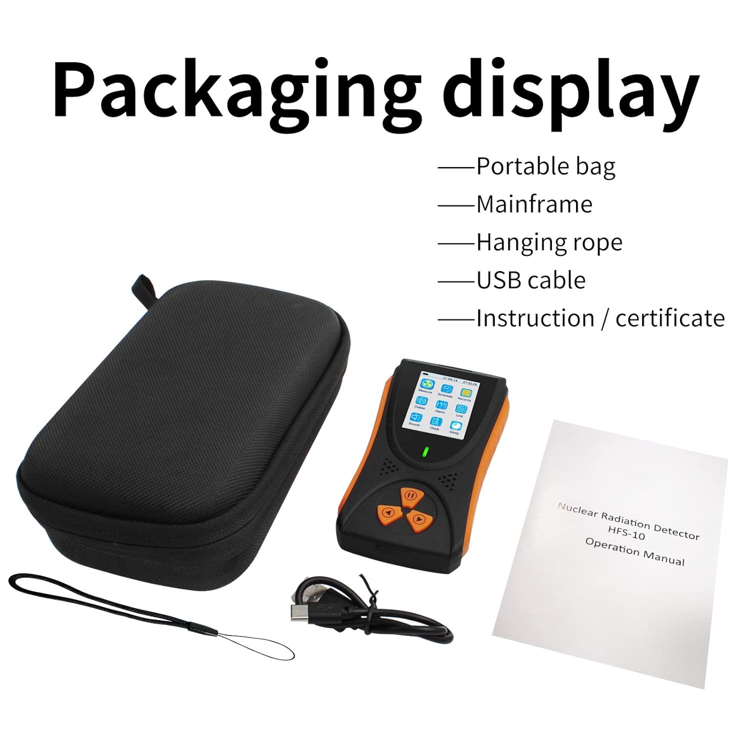 - Tenga en cuenta: el sensor de este detector de radiación nuclear está detrás de la pantalla LCD, el valor será más preciso al monitorear cerca de detrás del instrumento