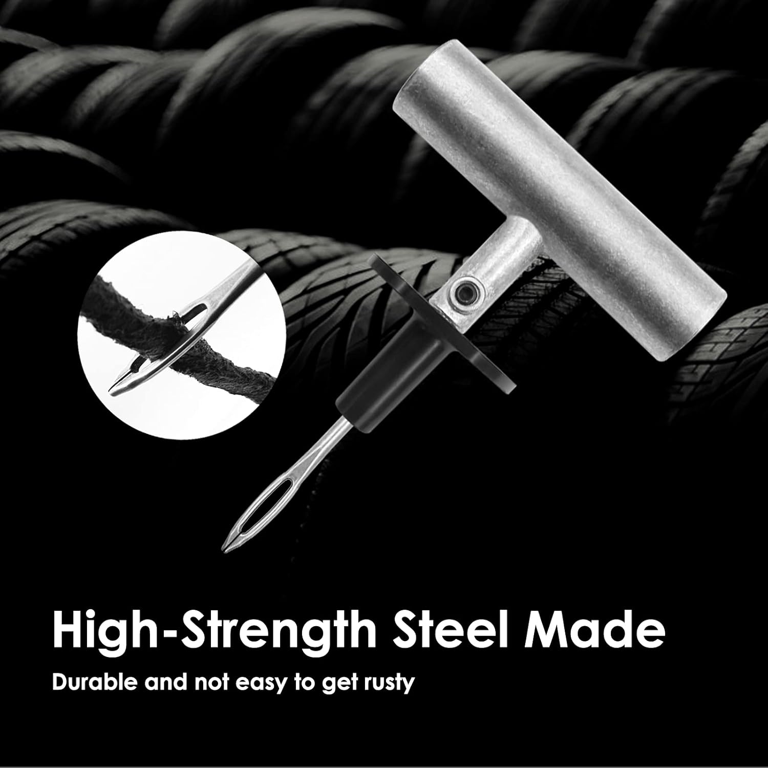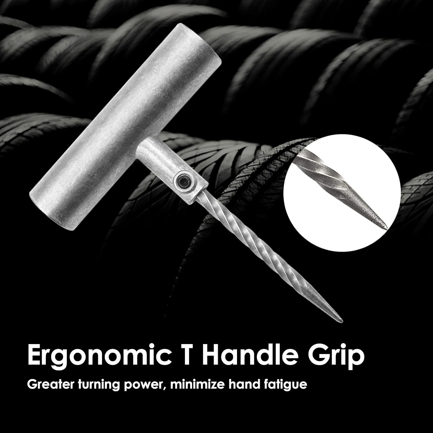 - Este kit de parches de neumáticos cumple estrictamente con los mejores estándares de producción. El mango en T resistente está hecho de acero pesado, proporciona una mayor potencia de giro y se siente muy bien en tu mano