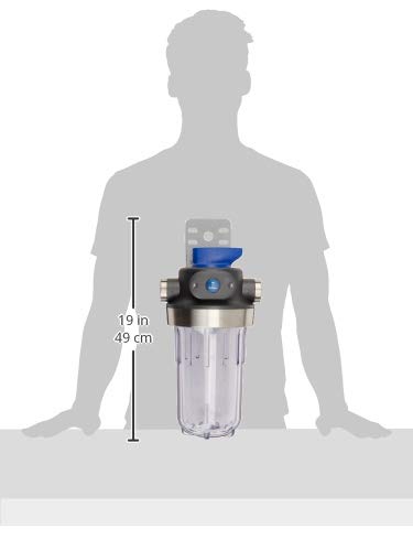 - Mantiene el flujo de los grifos: cuenta con una válvula de cierre de bypass, diseño de soporte integrado, temporizador de cambio de filtro a pilas y conectores de entrada y salida reforzados de acero inoxidable de 1”.