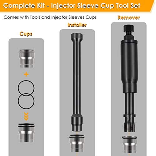 - Apoyo: nuestro enfoque en productos y servicios al cliente es insuperable. Si no estás 100% satisfecho con esta herramienta de instalación de extracción de taza de manga para inyector, simplemente devuélvala para un reembolso completo en 30 días, garantía con 1 año de garantía.