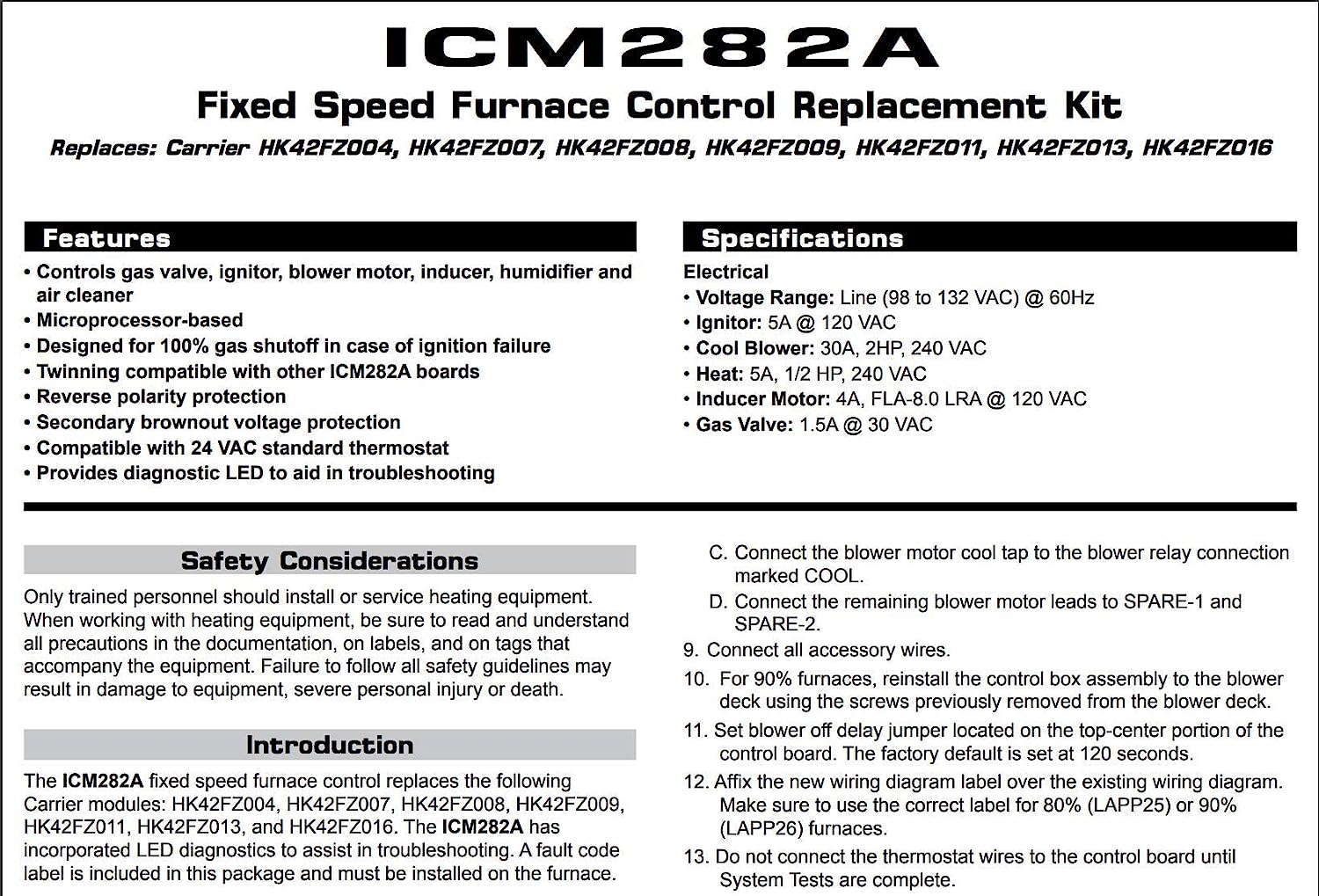 ICM Controls ICM282A repuesto OEM, portador HK42FZ - serie para 325878-751
