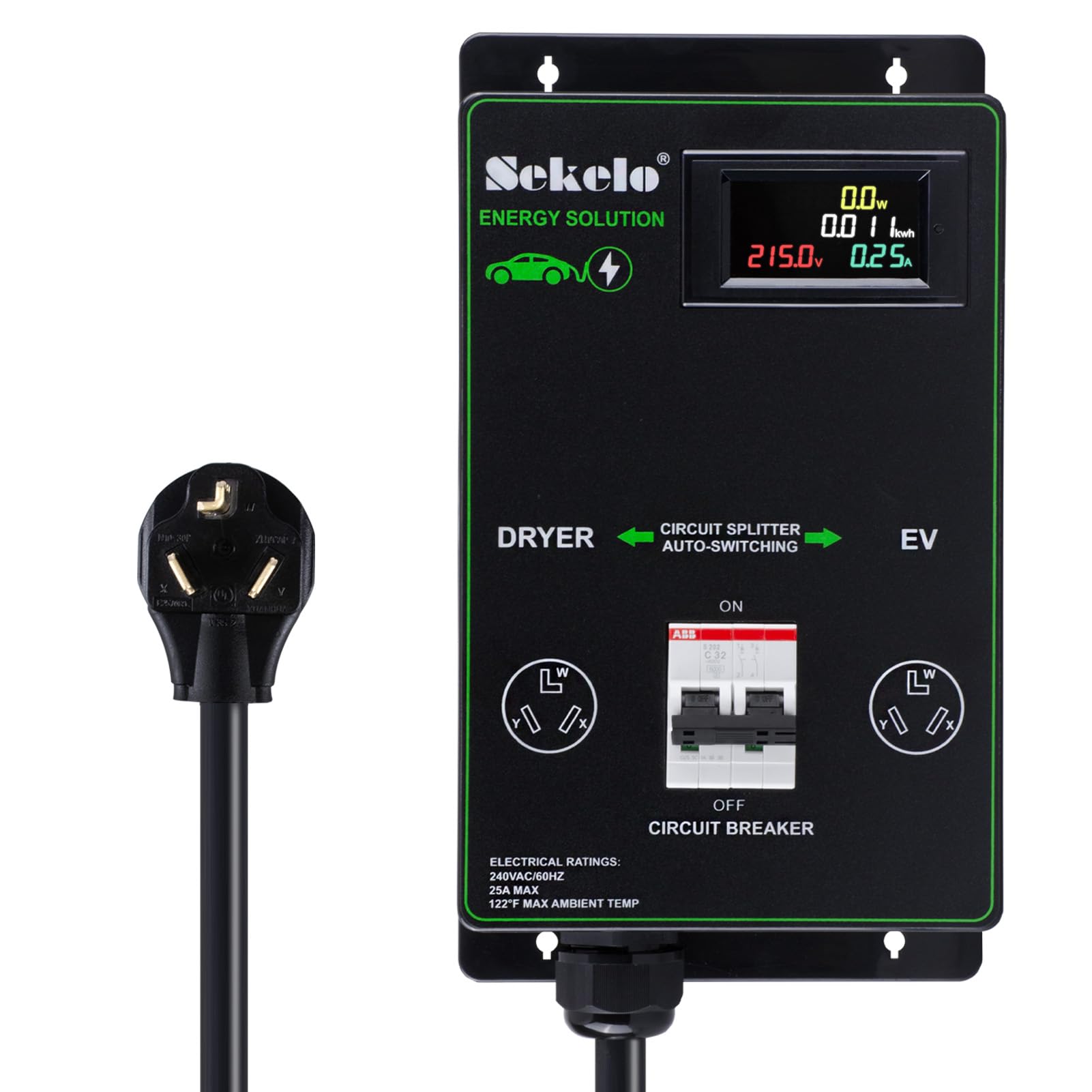 Integración de carga inteligente EV: interruptor de alimentación automático Sekelo para secadora y EV, NEMA 10-30, carga rápida, pantalla en tiempo real