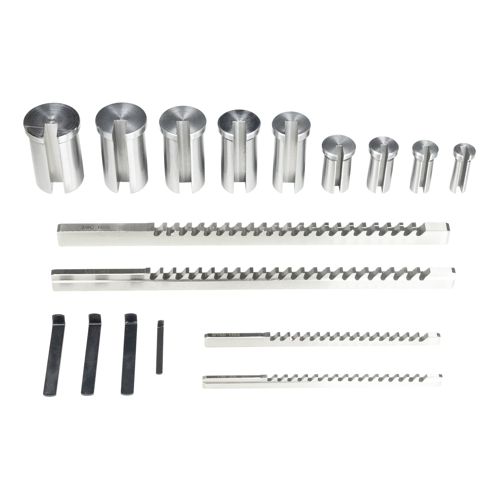 Juego de brochas para chavetero HFS(R) 18 piezas n.° 10 HSS en caja equipada, 4 brochas y 9 bujes