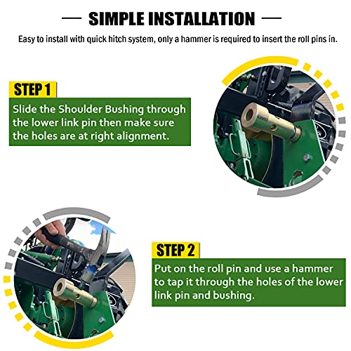 - Gran función: uso en implementos CAT 2 (categoría 2) para uso con sistemas de enganche rápido. Conversión rápida y sencilla para hacer implementos con pines de 3 puntos de categoría 2 compatibles con un enganche rápido.