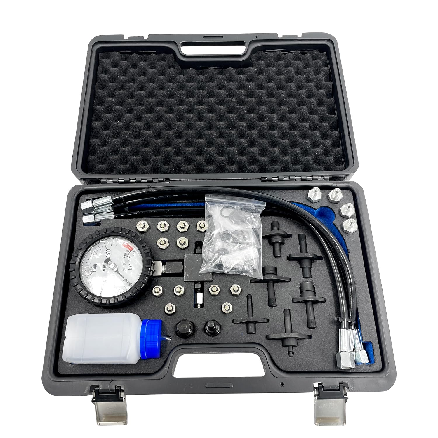 - [Función]: El probador WT04A3100D es una herramienta importante para el diagnóstico correcto de los sistemas ferroviarios comunes. Puede utilizar un manómetro de alta presión (2000 bar) y mangueras de alta presión para verificar la presión real en el circuito de alta presión del sistema de carril común.