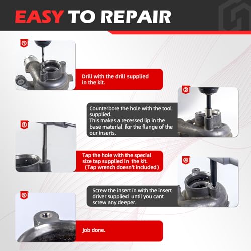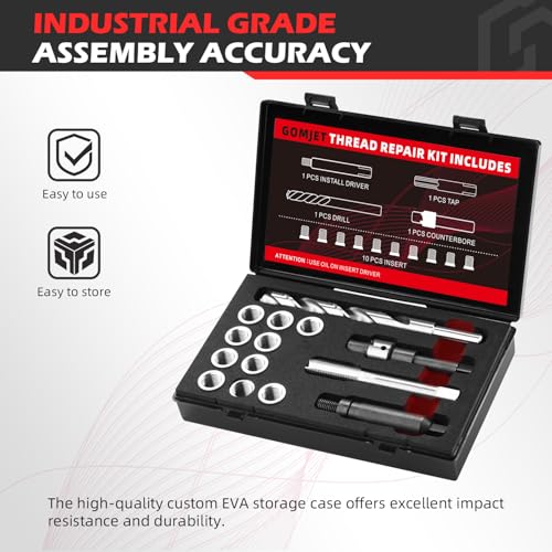 - TAMAÑO ESTÁNDAR: GOMJET Kit de reparación de rosca métrica estándar M12X1.25, siempre que la longitud del inserto es de 0.591 in.