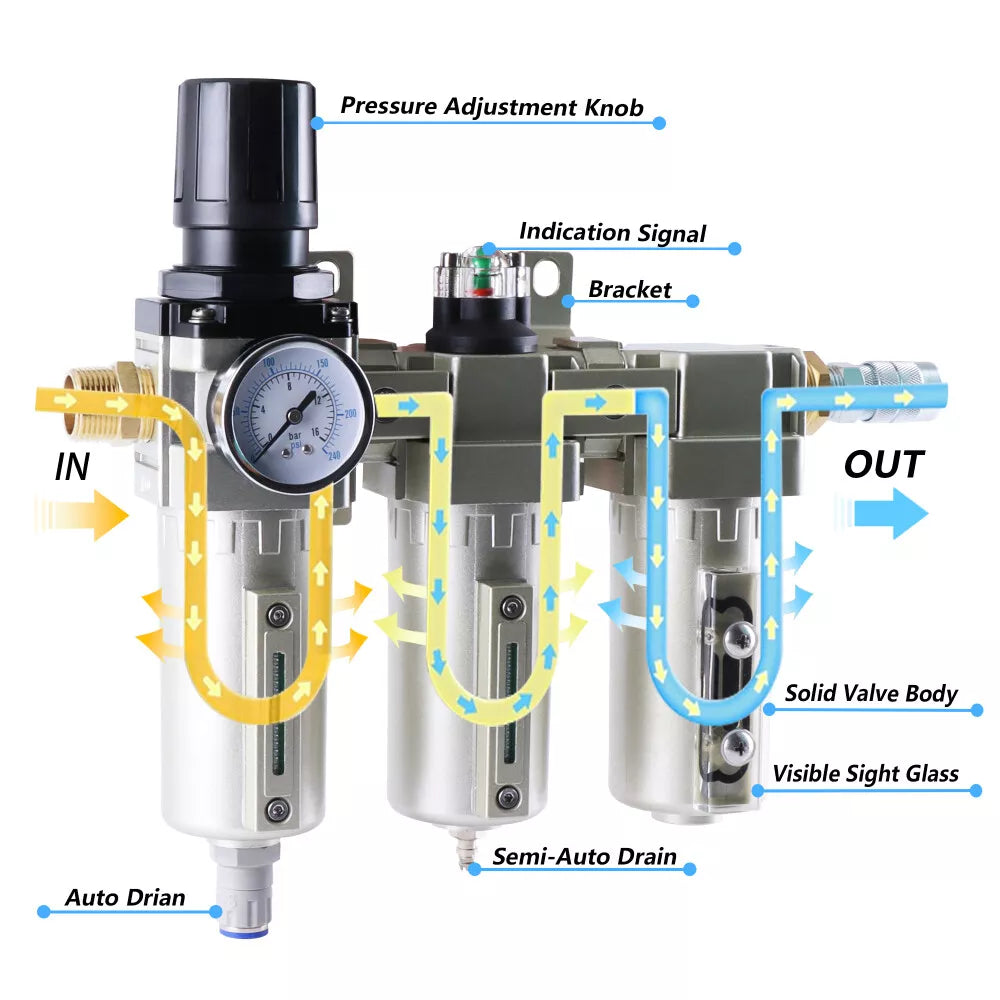 Kit de secado de aire con filtro coalescente y regulador de aire desecante NPT de 3/4 de pulgada