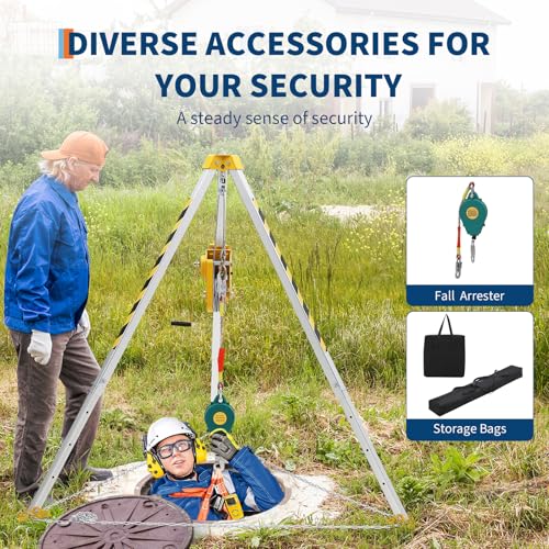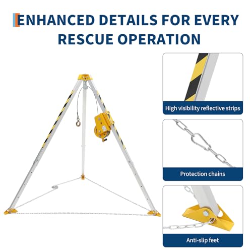 Kit de trípode de espacio confinado, cabrestante de 1200 libras, patas ajustables de 7 pies, cable de 98 pies, sistema de protección contra caídas de 33 pies, construcción de trípode de espacio