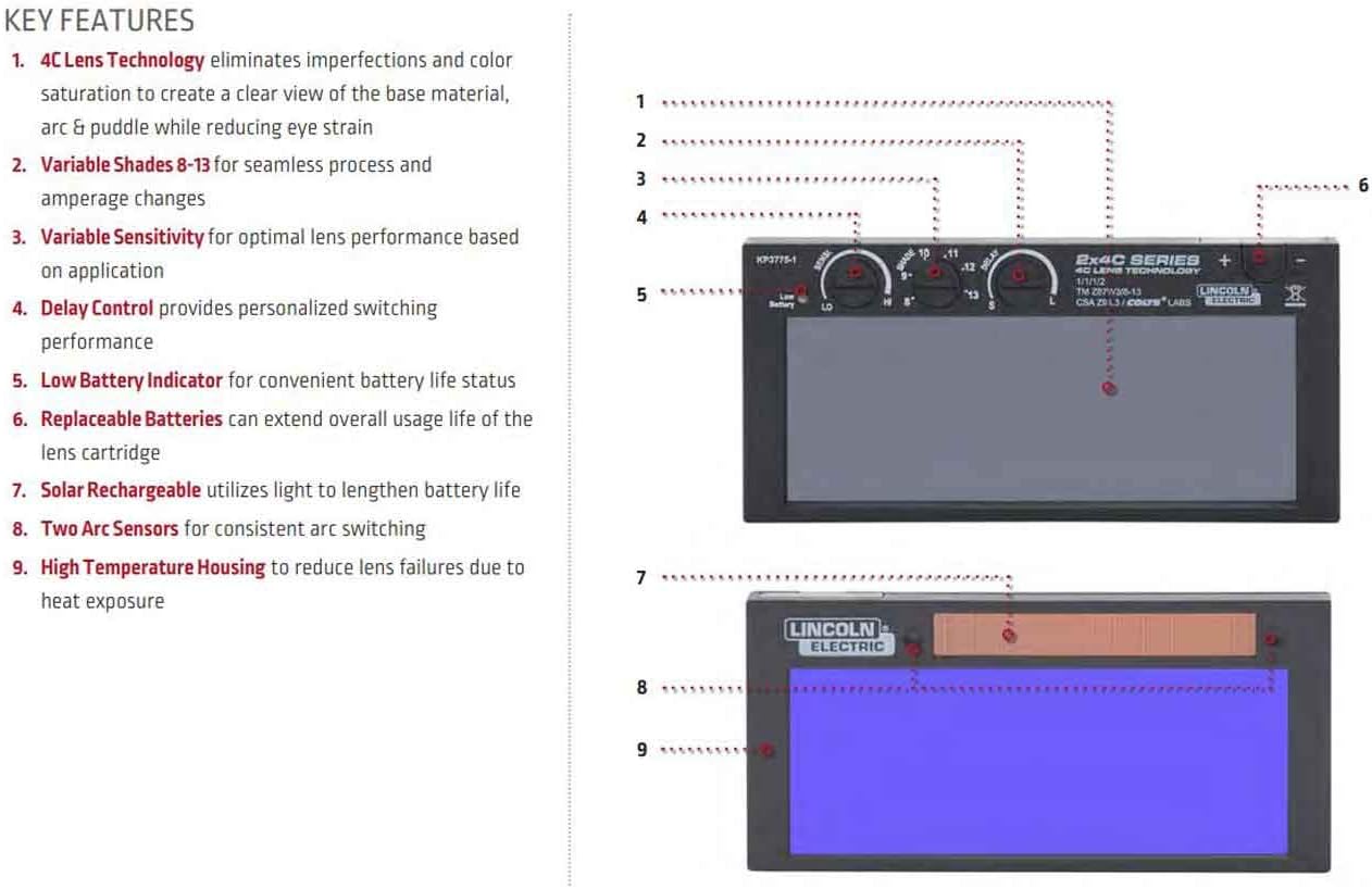 LINCOLN ELECTRIC Lente de soldadura de oscurecimiento automático serie C 2x4, sombra variable 8-13 KP3775-1