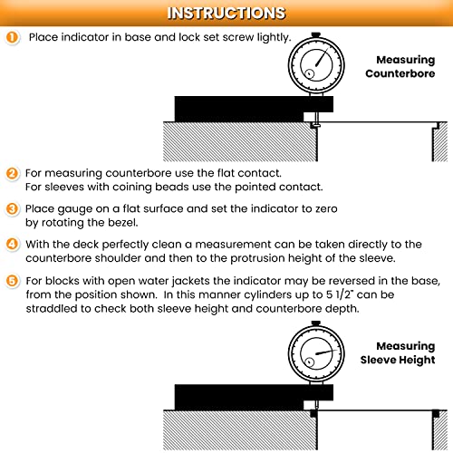Medidor de altura y orificio de contador para todos los motores diésel, indicador de esfera, rango de calibre de cilindro 0-1 pulgada, graduaciones 0.000 pulgadas, lectura 0-100