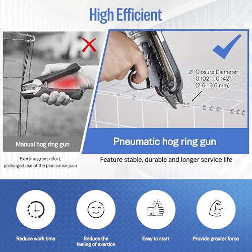 - [Diseño compacto y equilibrado] Esta pistola de anillo de cerdo cuenta con un cargador corto (capacidad: 100 piezas) para una mejor maniobrabilidad, mejor equilibrio y control estable, ideal para operar en espacios de trabajo reducidos, un funcionamiento más flexible