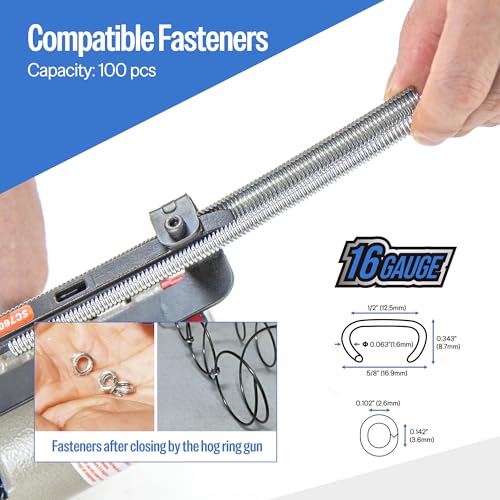 - [Aplicaciones de uso flexible] Un gran alicate de anillo de cerdo para tareas como sellado de bolsas, cierre de malla, cercas ligeras, ensamblaje de jaula y tapicería de muebles, especialmente donde la agilidad y la precisión importan