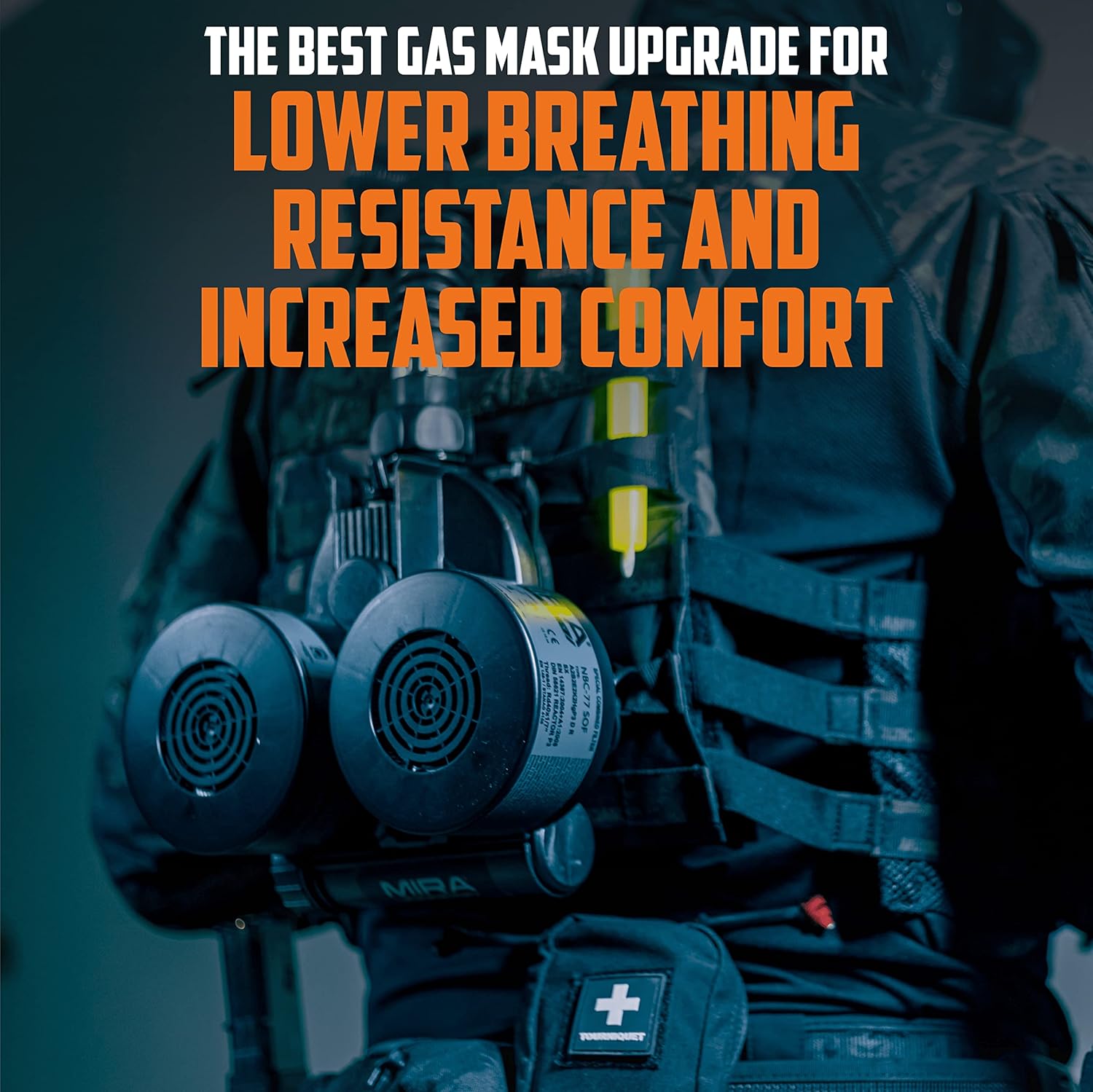 - CONVENIENTE: Diseño fácil de usar. Compatible con cualquier máscara de gas tradicional roscada NATO de 1.575 pulgadas. Este soplador compacto y ligero tiene un perfil delgado para su uso en espacios reducidos y se monta fácilmente en su cinturón o paquete con dos filtros CBRN, conectándose a su respirador a través de una manguera de filtro de 1.575 in. A diferencia de otros sopladores PAPR, el MB-90 funciona con baterías AA asequibles y fáciles de encontrar para hasta 8 a 12 horas de flujo de aire sostenido, entregando 90 litros de aire por minuto.