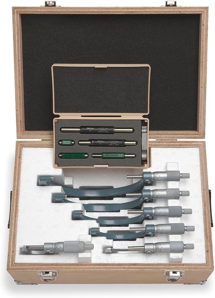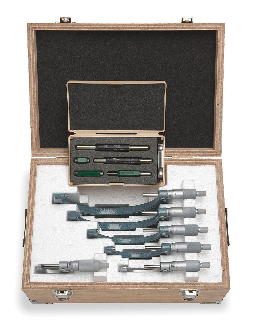 Mitutoyo 103-907-40, juego de micrómetro externo con certificaciones. Rango de 0.6 pulgadas; resolución de 0.0001 pulgadas (6 piezas).