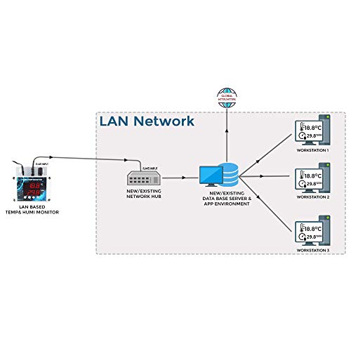 - Adquisición de datos: opción 1: para finalizar el alcance del usuario con BMS/SCADA existente/cualquier otro sistema de adquisición. (Guía técnica y asistencia proporcionada) | Opción 2: servidor web (nueva configuración) alojamiento en la ubicación del usuario final. Opción para empujar datos en la nube para alerta de SMS/correo electrónico. Alcance de suministro: 1 unidad de monitor de alarma de temperatura y humedad, adaptador de alimentación, manual de instrucciones y certificado de calibración.