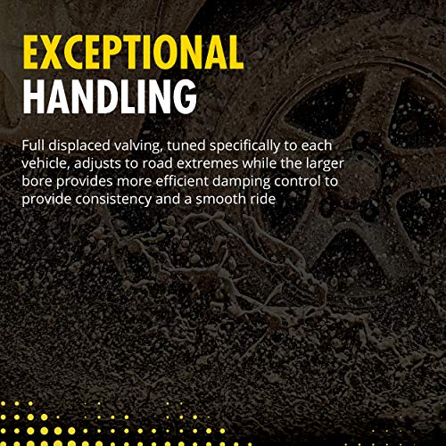 - Manejo excepcional: válvula de desplazamiento completo, afinada específicamente a cada vehículo, se ajusta a los extremos de la carretera, mientras que el orificio más grande proporciona un control de amortiguación más eficiente para proporcionar consistencia y una conducción suave
