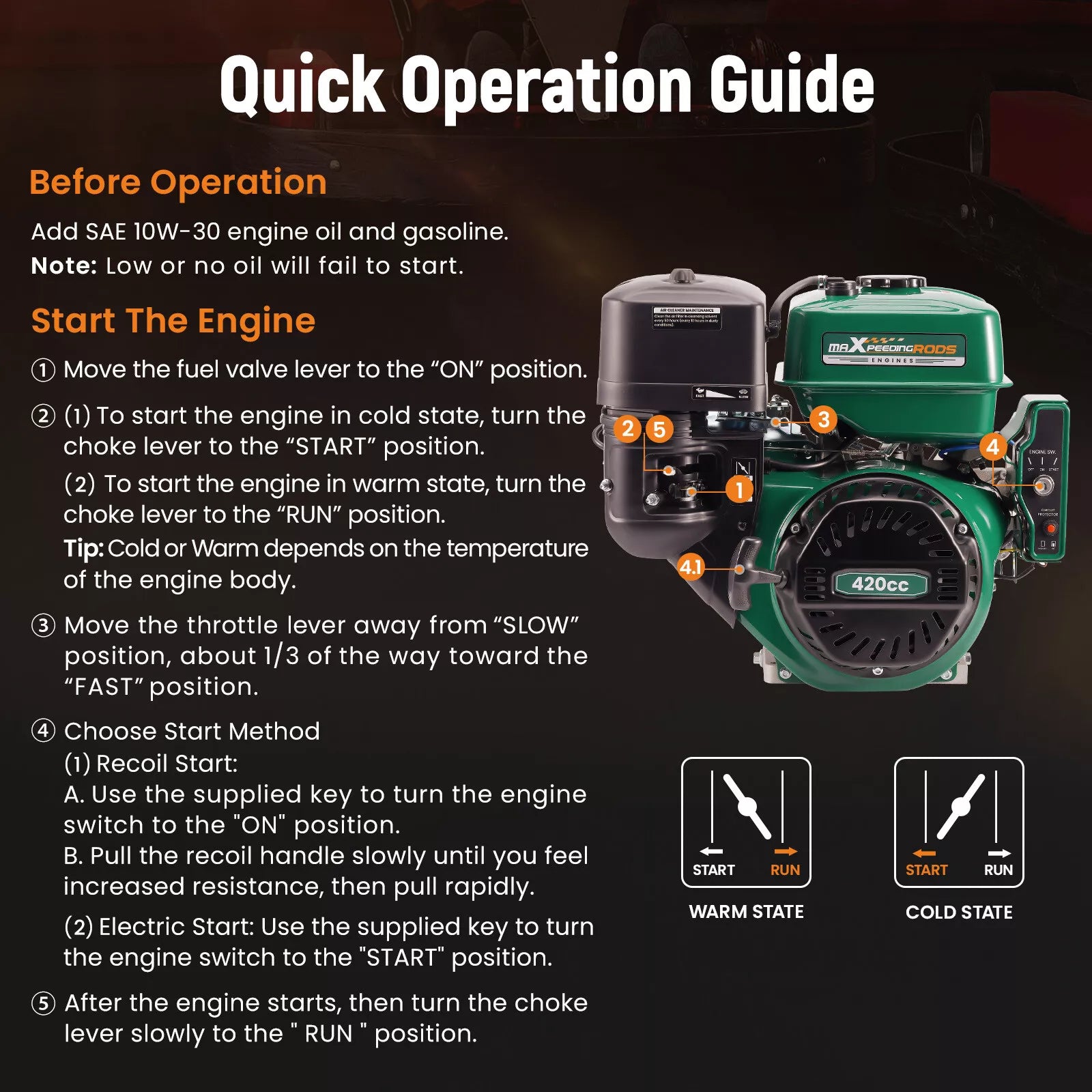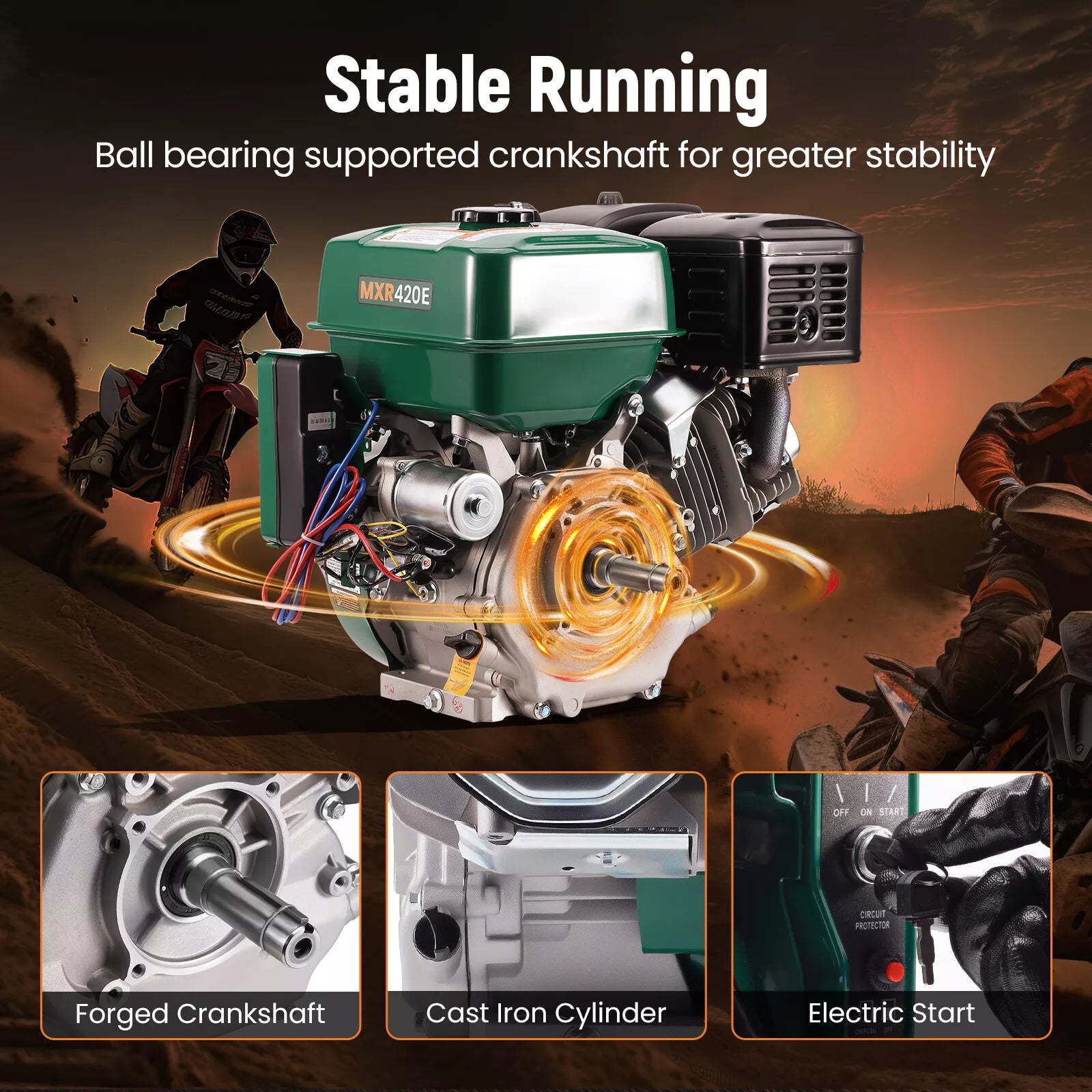 Motor horizontal de gasolina de 4 tiempos y 15 HP y 420 cc con arranque eléctrico para karts 8M0N2B