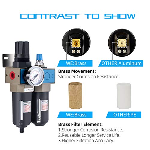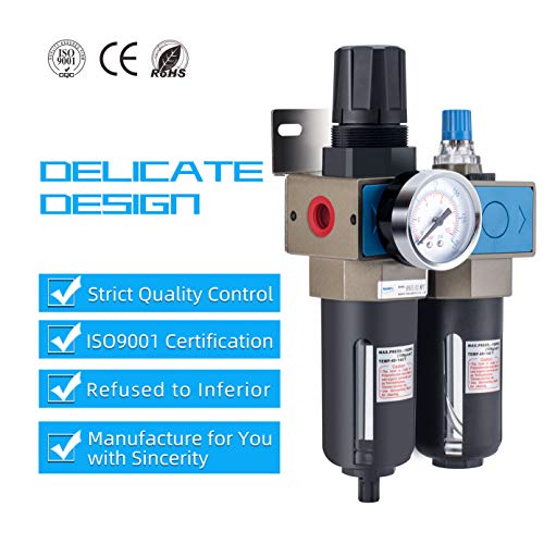 - Combinación de lubricador de regulador de filtro de aire NPT de 1/4 "- Limpia y seca el aire, regulación de presión precisa, lubrique su equipo con aire (recomienda aceite lubricador: ISO-VG32).