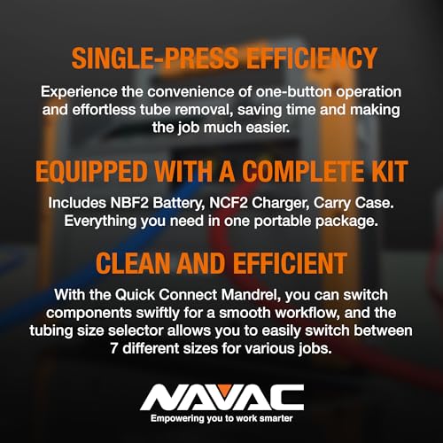 - Primero de la industria: NAVAC NTB7L es el primer doblador de tubos de potencia en el mercado HVAC. Su objetivo es facilitar el laborioso trabajo de los técnicos al doblar tubos de cobre grandes.