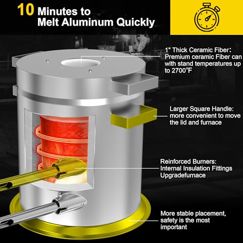 - Aplicaciones versátiles: ideal para fundir hasta 55.1 lbs de metales como cobre, aluminio, oro y plata, por lo que es perfecto para la fabricación de joyas, proyectos de bricolaje y otras necesidades de fundición
