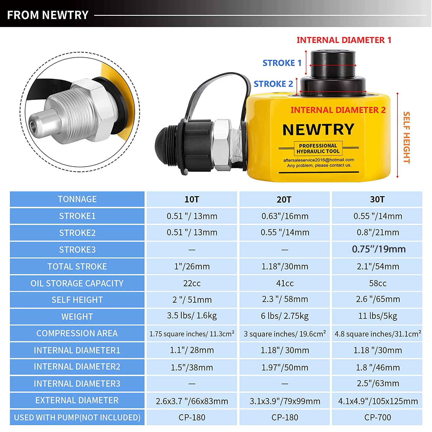 NEWTRY Cilindro hidráulico Ram Jack 30T Cilindro hidráulico Perfil bajo Ram Jack Multisección 2.13 "Cilindro de elevación de carrera Mini, portátil para maquinaria, puente, construcción